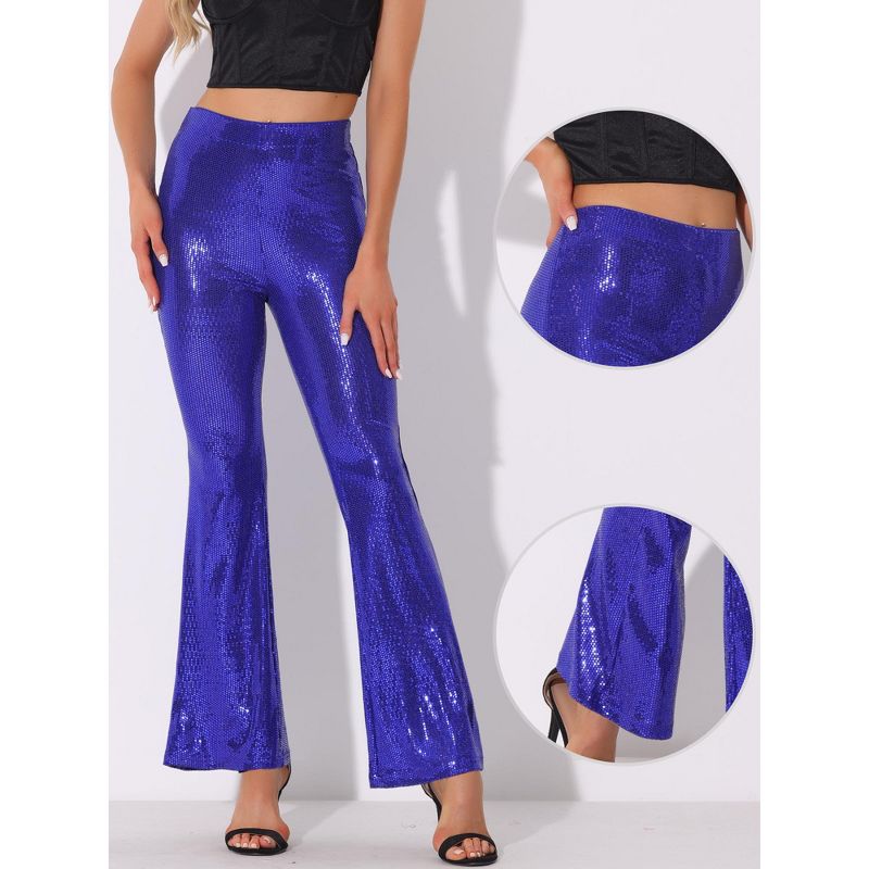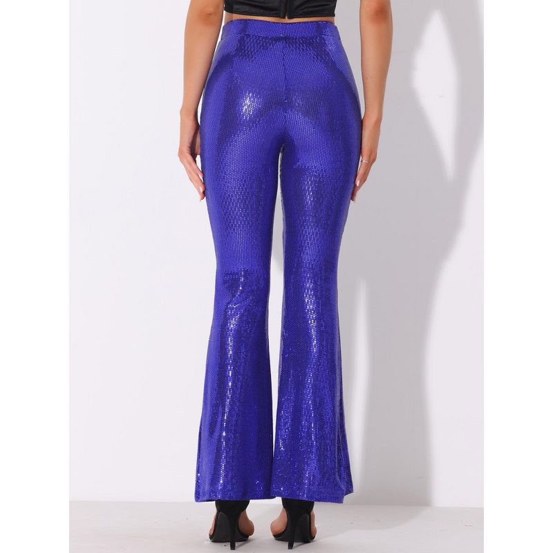 INSPIRE CHIC Women's Sparkle Sequin Stretch High Waist Shiny Flare Bottoms Pants Blue Purple Large