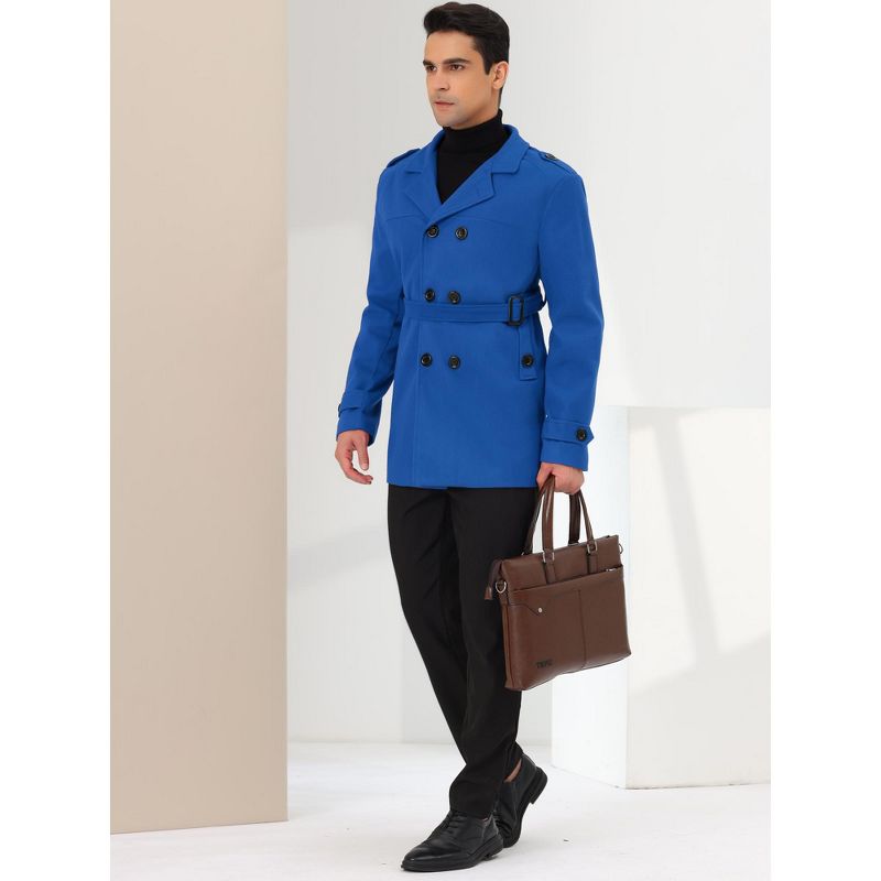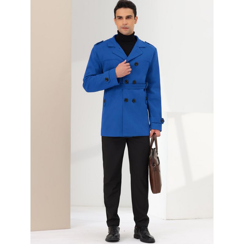 Lars Amadeus Men's Middle Length Double Breasted Notch Lapel Belted Pea Coats Blue Medium