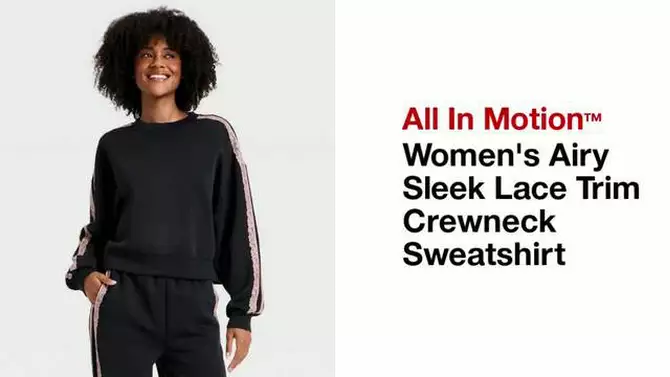 Women's Airy Sleek Lace Trim Crewneck Sweatshirt - All In Motion™ Maroon S