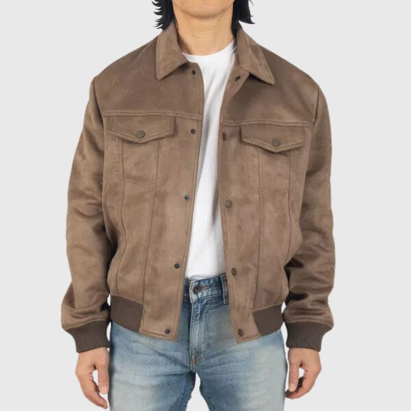 Alpine Swiss Men's Blake Vegan Suede Bomber Jacket – Lightweight Slim Fit Casual Softshell Coat with 5 Pockets ERTH ST L