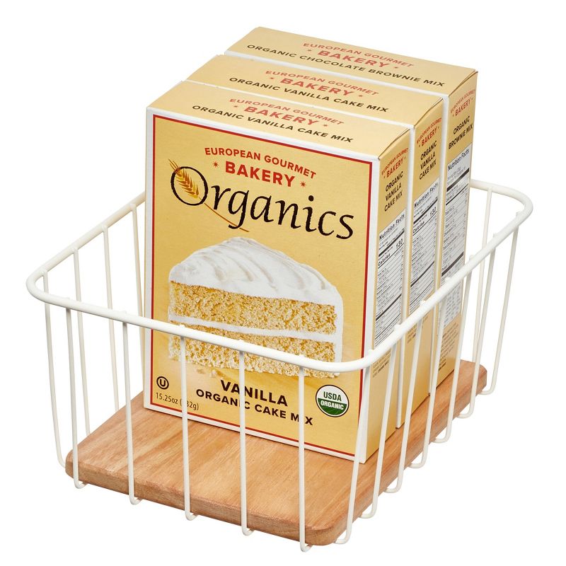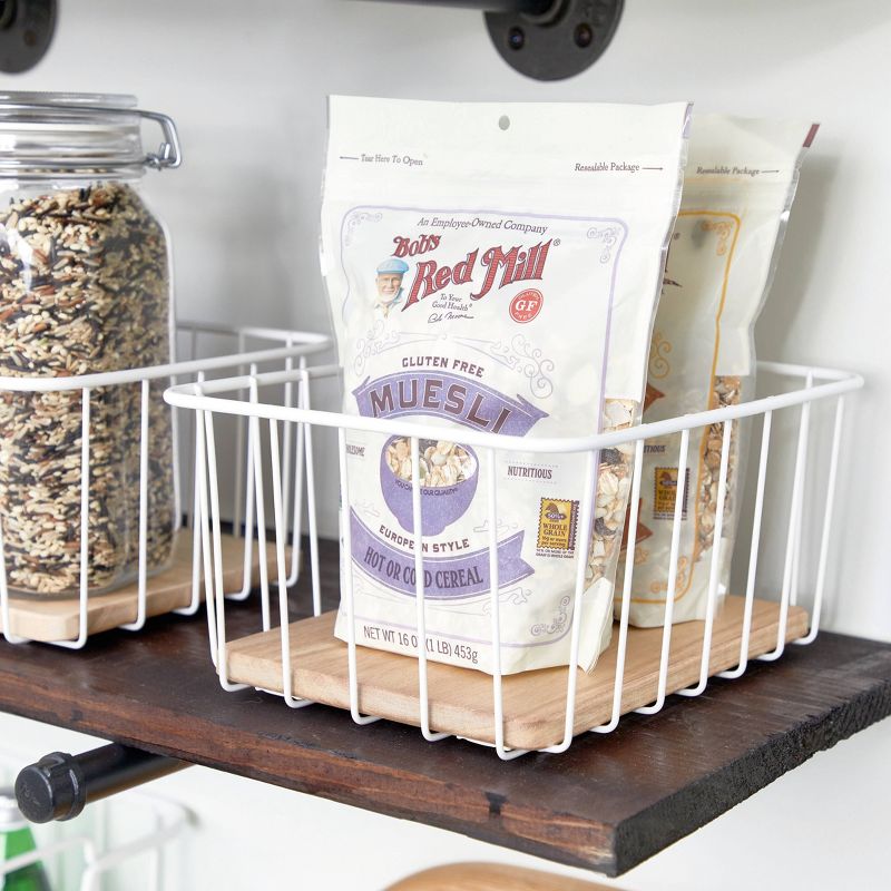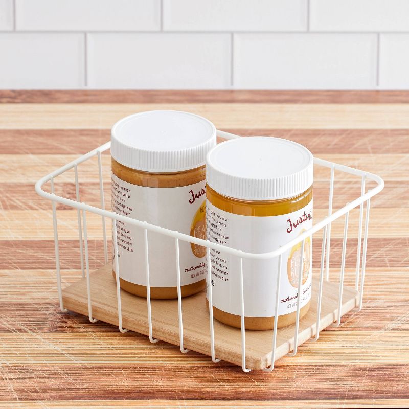 iDESIGN Wire and Paulownia Wood Kitchen Pantry and Cabinet Organizer Bin: Multicolored Storage, Wood & Metal, 10"x8"x5"