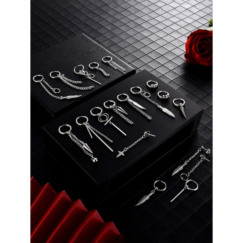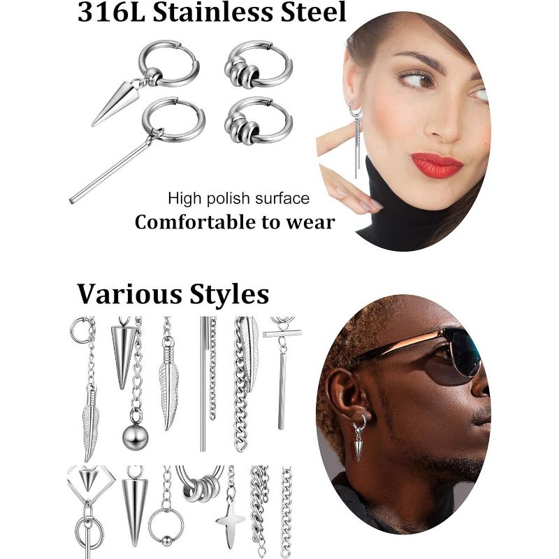 20 Pieces Men Dangle Earrings Stainless Steel Huggie Hinged Hoop for Women Black One Size