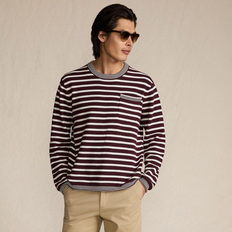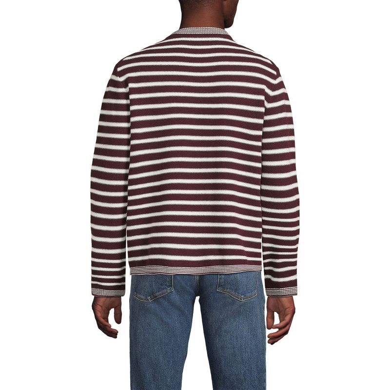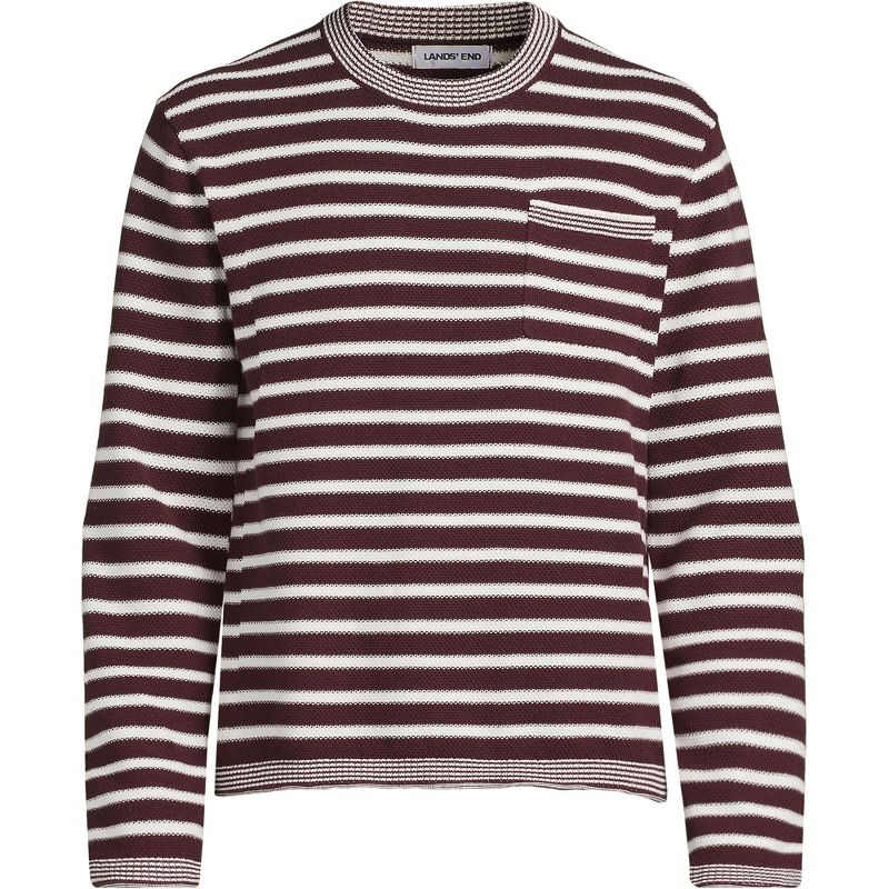 Lands' End Men's Long Sleeve Textured Cotton Crewneck Sweater - Small - Lush Burgundy Stripe