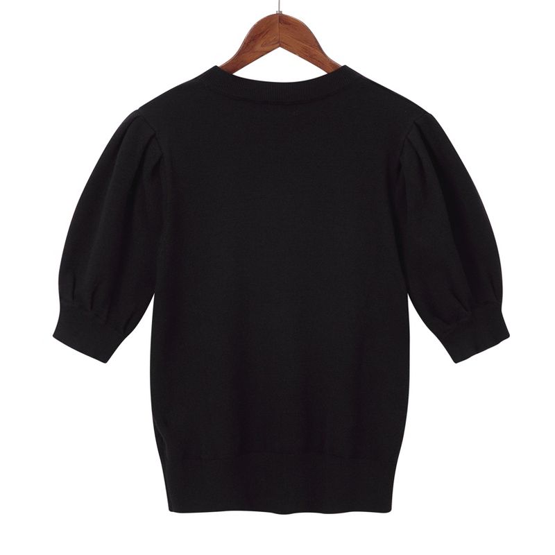 Clearlove Womens Puff Short Sleeve Sweater Tops Crewneck Basic Knit Pullover Lightweight Solid Casual Sweaters Blouse Black XXL