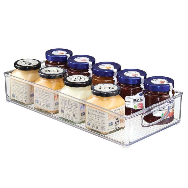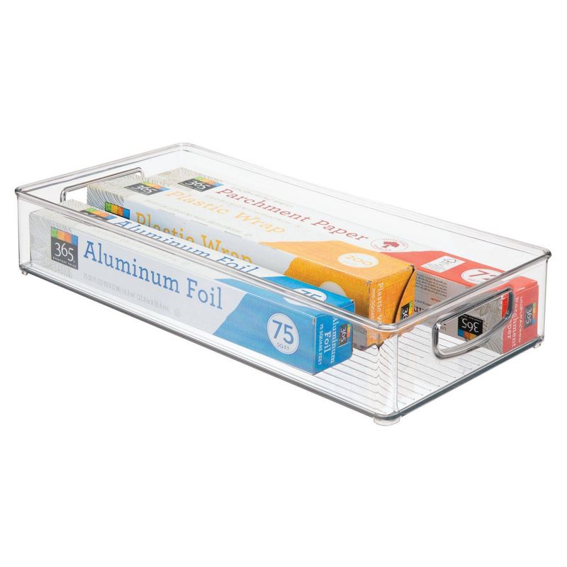 iDESIGN Plastic Kitchen Storage Organizer Binz with Handles Clear: 16" x 8" x 3", Spot Clean, Kitchen Cabinet Organizers