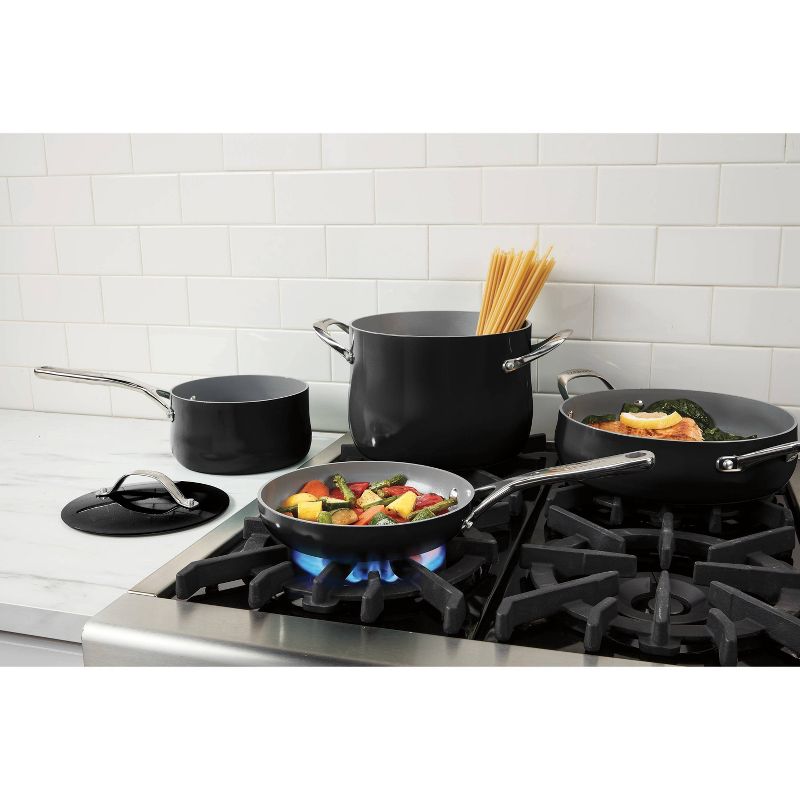 Cuisinart Culinary Collection 12pc Ceramic Cookware Set Black: Nonstick, Stainless Steel Handles, Induction Compatible
