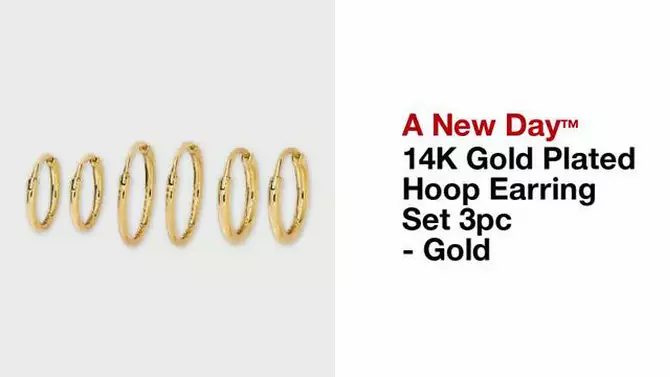 14K Gold Plated Hoop Earring Set 3pc - A New Day™ Gold