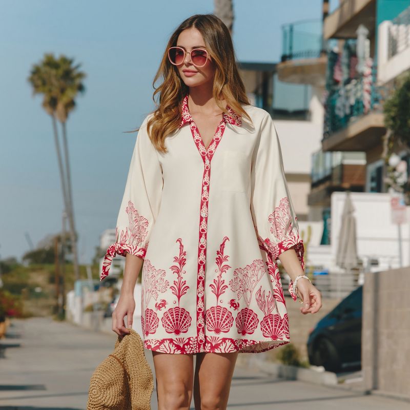 Women's Vacationing Tropical Print Mini Shirt Dress - Cupshe-M-White