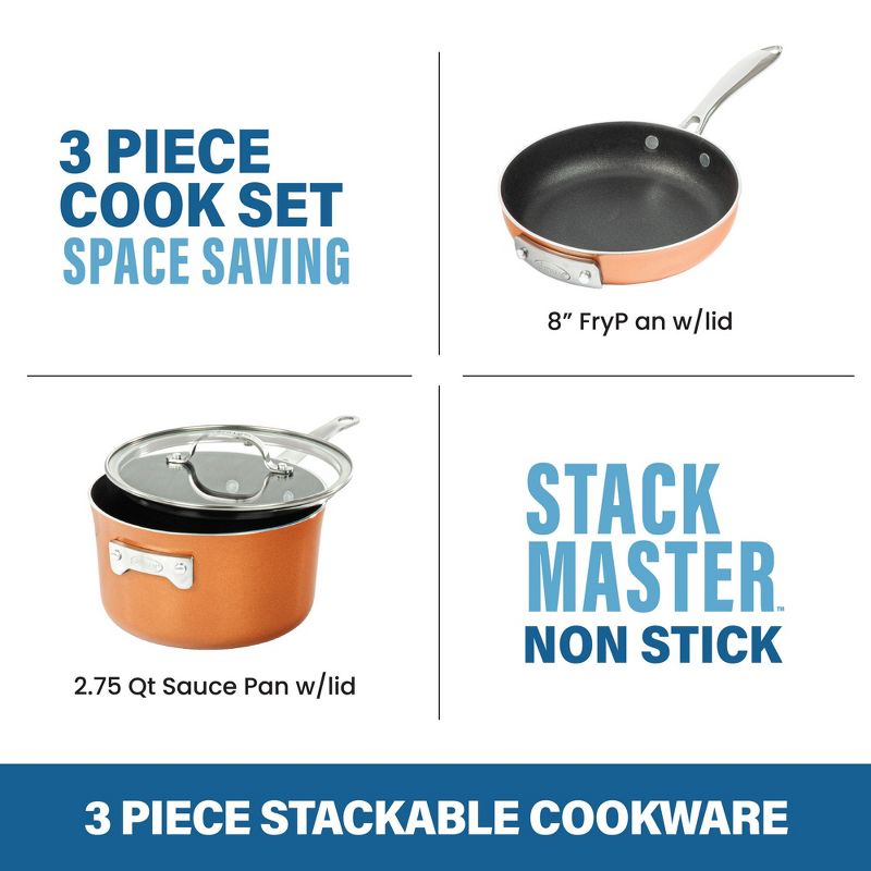 Gotham Steel Stackable 3 Pc Cookware Set Space Saving Nonstick Cookware Set