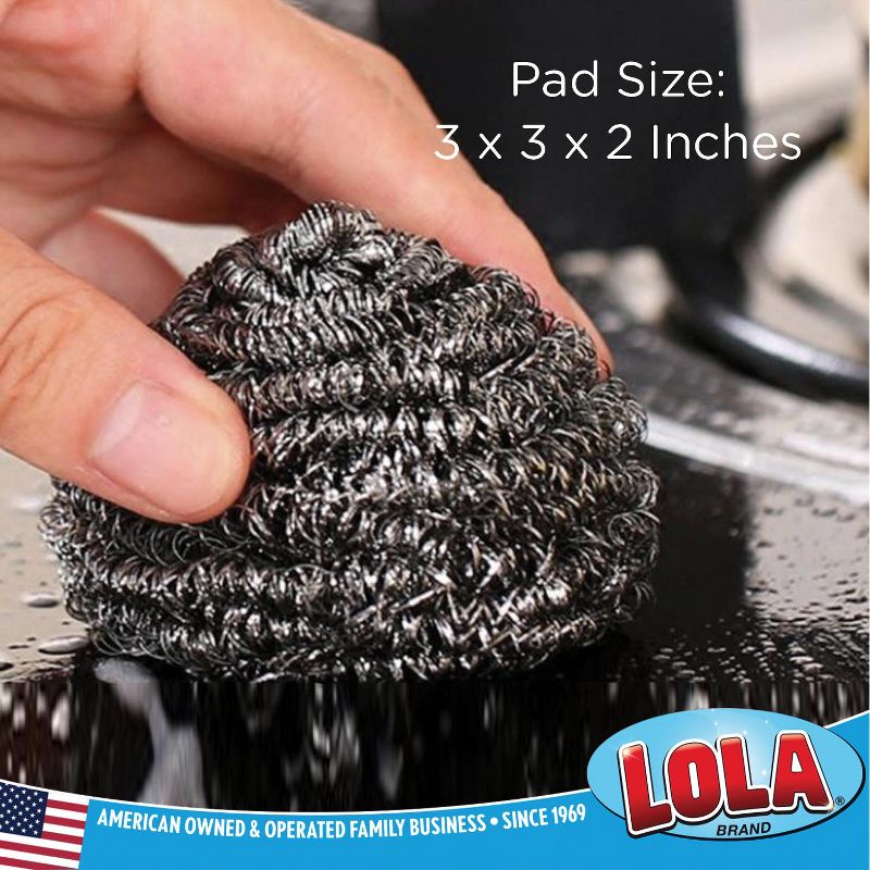 Stainless Steel Wool Scourer -Jumbo Sized- 12 Pack, 35 Grams, by LOLA, Curled Flat Wire, Cleans Caked On & Baked On Messes on Cookware