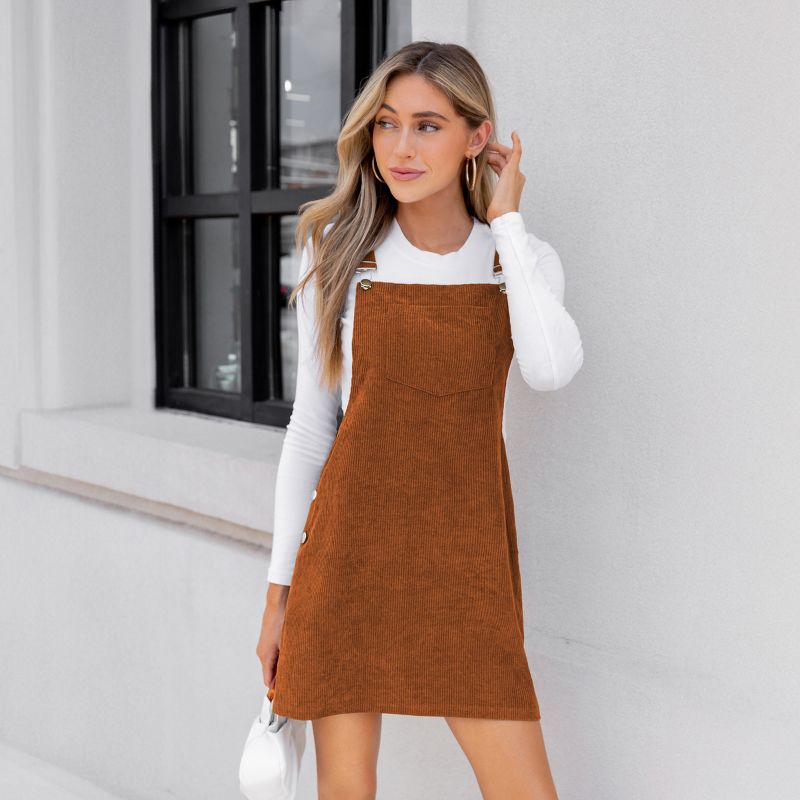 Women's Corduroy Square Neck Overall Dress - Cupshe-S-Brown
