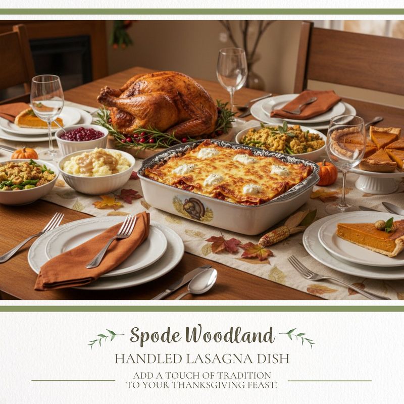 Spode Woodland 15"x12" Rectangular Handled Dish - Traditional Turkey Design, British Flowers Border, Fine Porcelain Bakeware, Dishwasher Safe