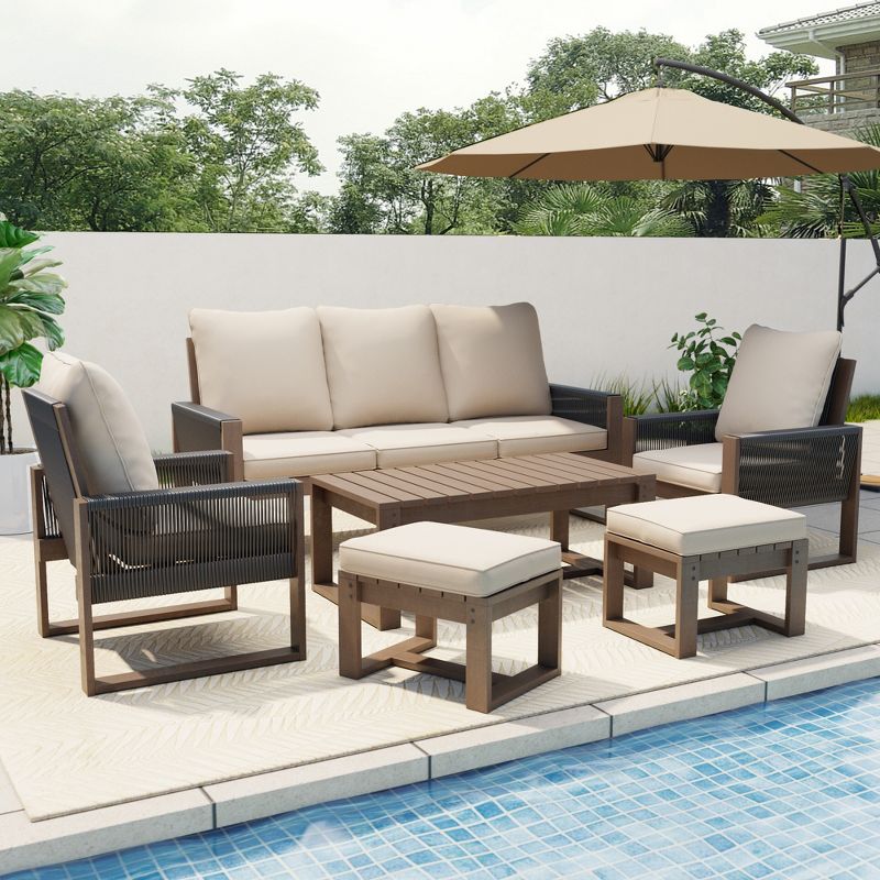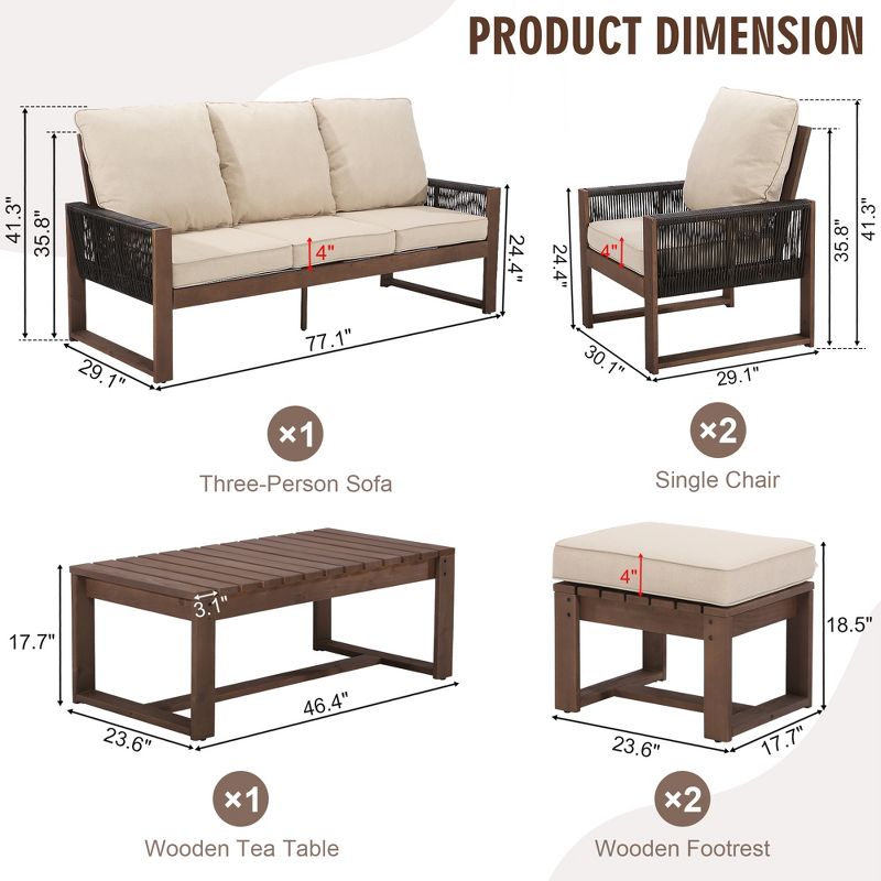 YARDSIGHT 4-Piece Outdoor Patio Furniture Set with 3-Seat Sofa, 2 Armchairs and Coffee Table, Weather-Resistant with Cushions