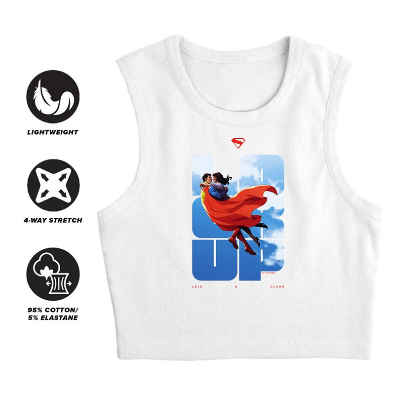 Women's Superman 2025 Superman Lois Look Up Sleeveless Crop Top Tank, White, X Large
