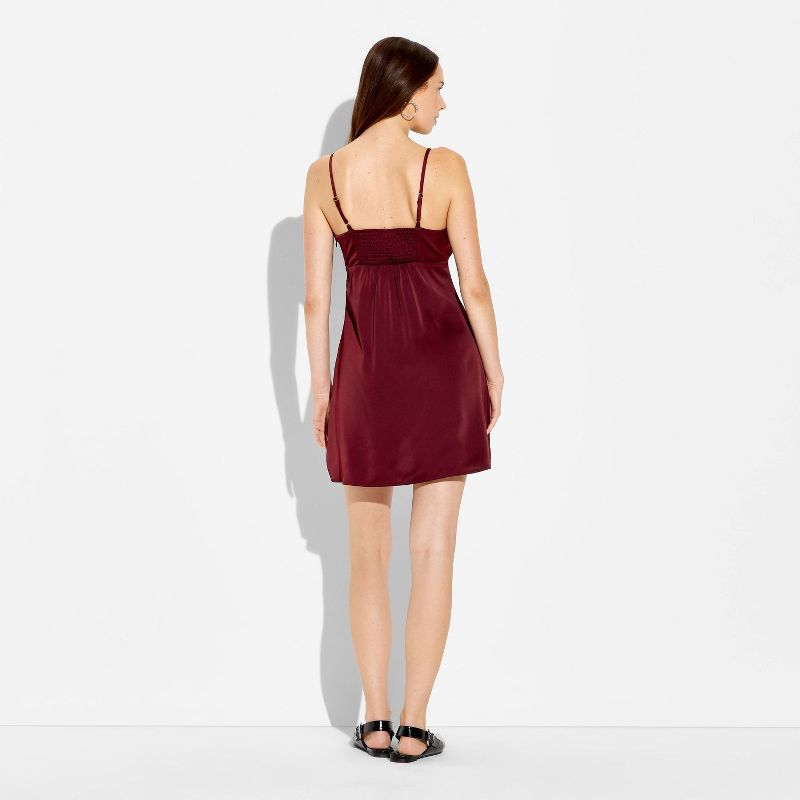 Women's Lace Trim Satin Bustier Mini A-Line Dress - Wild Fable™ Burgundy XXS