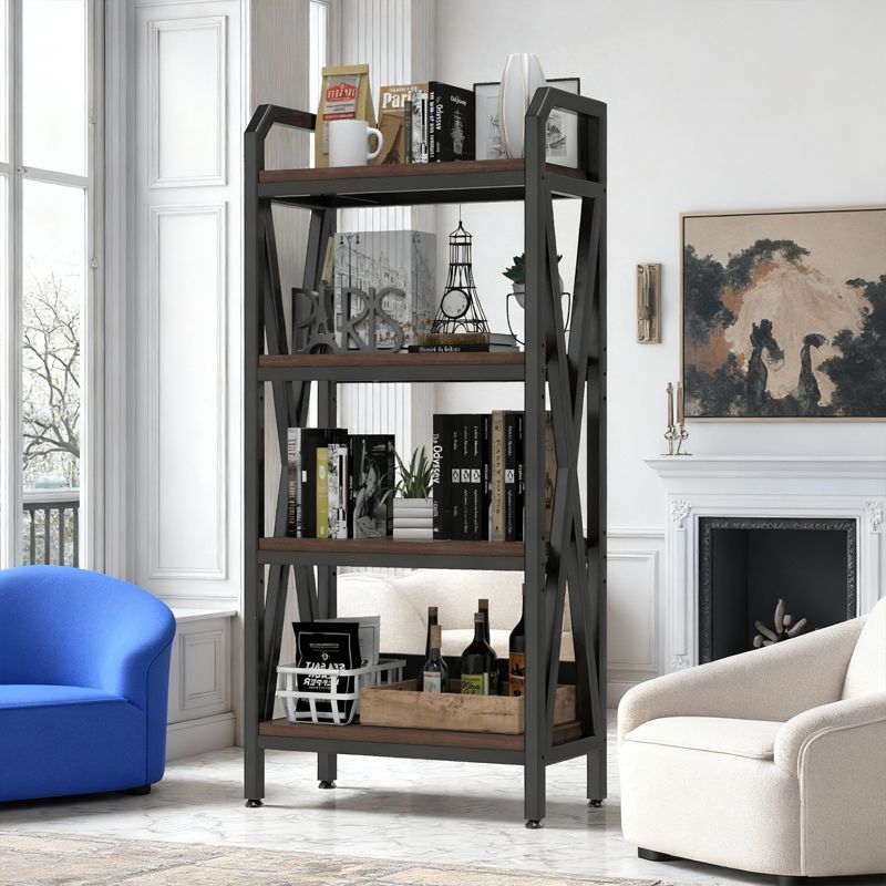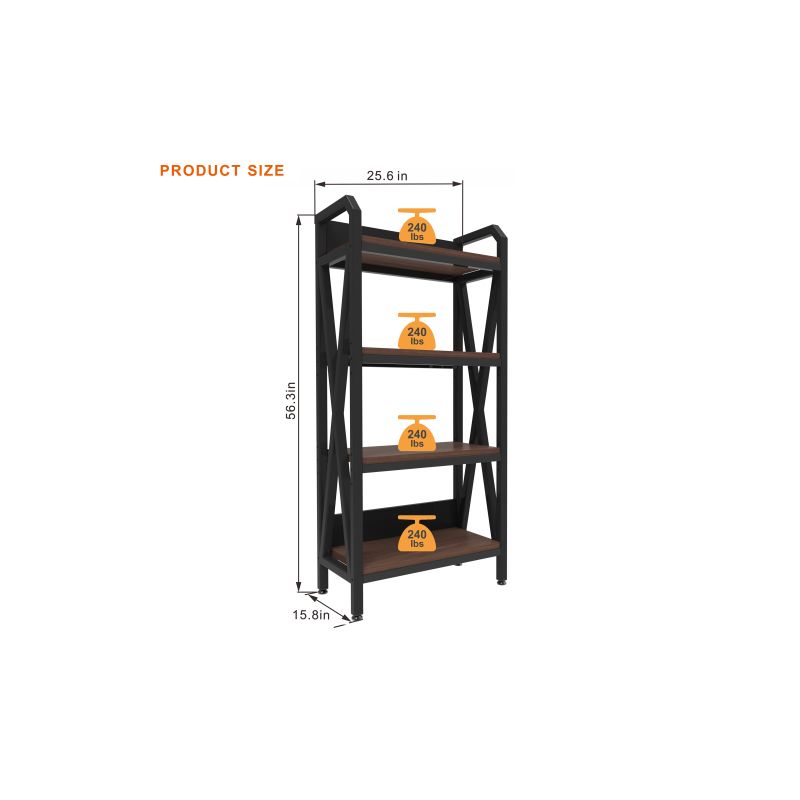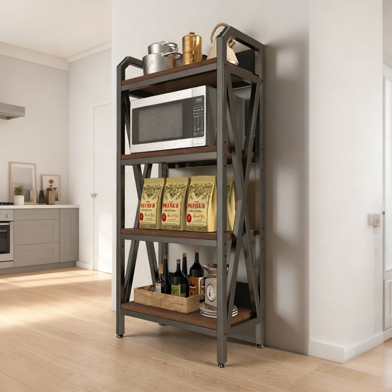 Bakers Rack 4-Level Storage Shelves Mental and Wooden Kitchen Shelves, Kitchen Organizers and Storage, for Garage, Pantry, Bathroom ,25.60'' Length