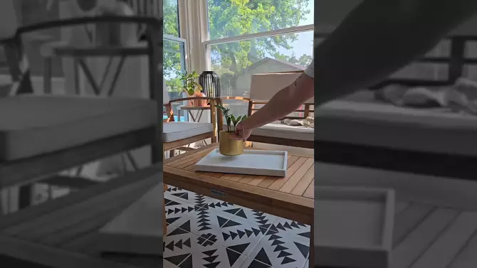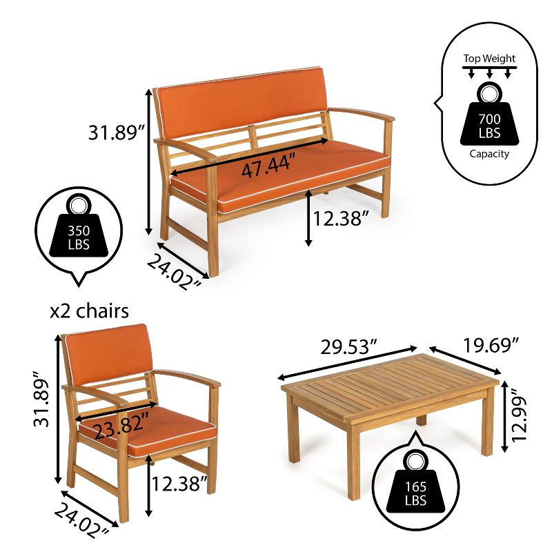 Barclay 4-Piece Modern Coastal Acacia Wood Conversation Outdoor Patio Set with Cushions, Orange/Teak Brown - JONATHAN Y