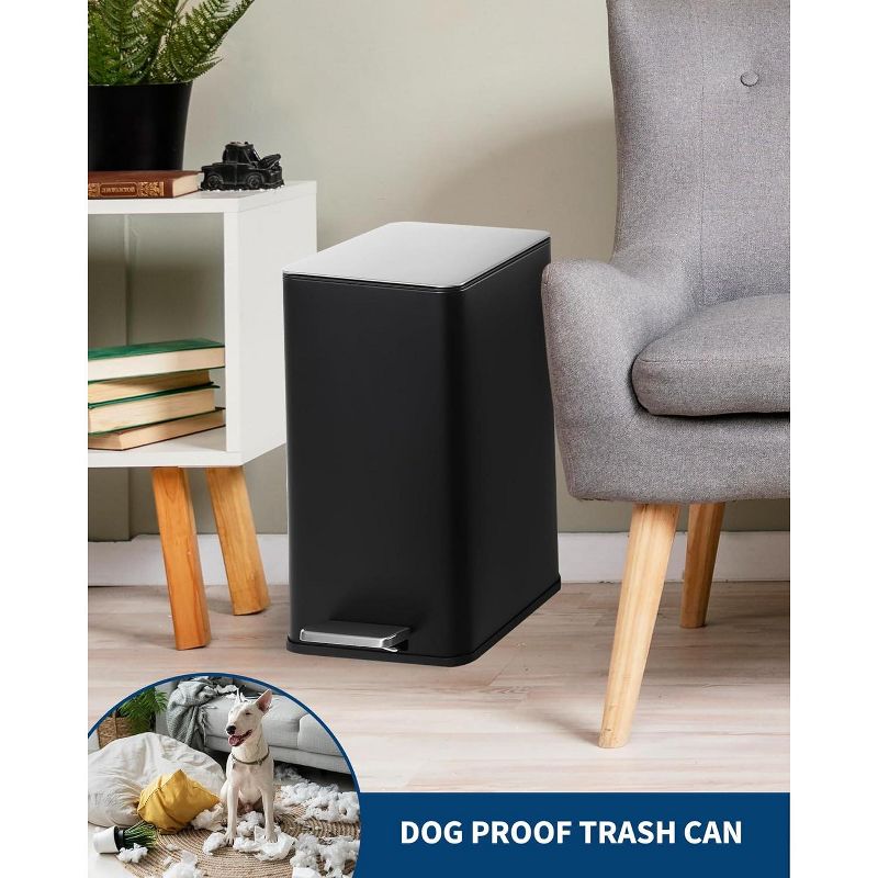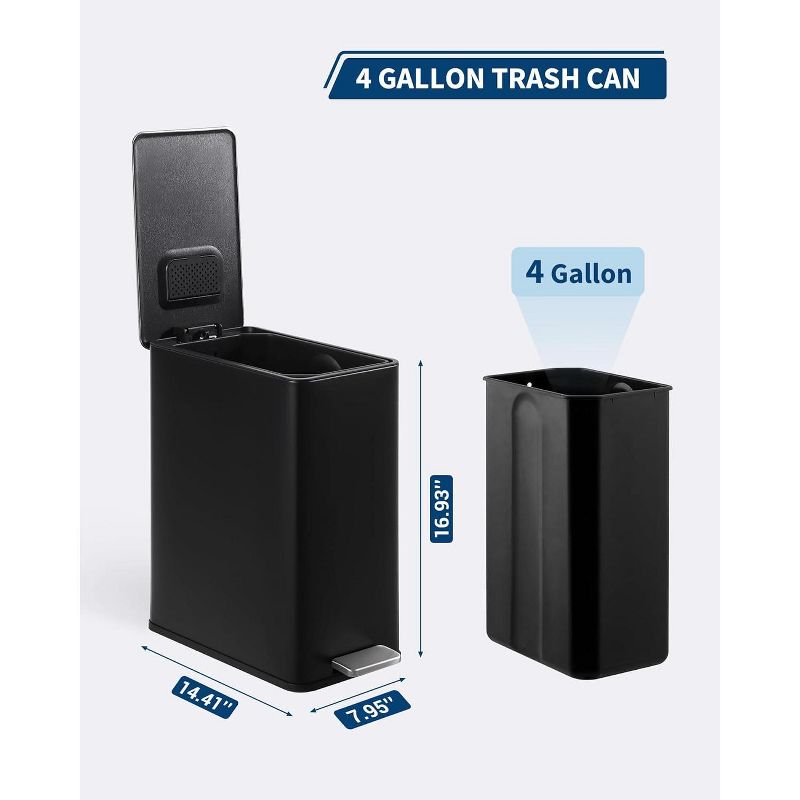 15L Step Trash Can Stainless Steel with Soft-Close Lid, 4 Gallon Slim Kitchen/Bathroom Garbage Bin in Black
