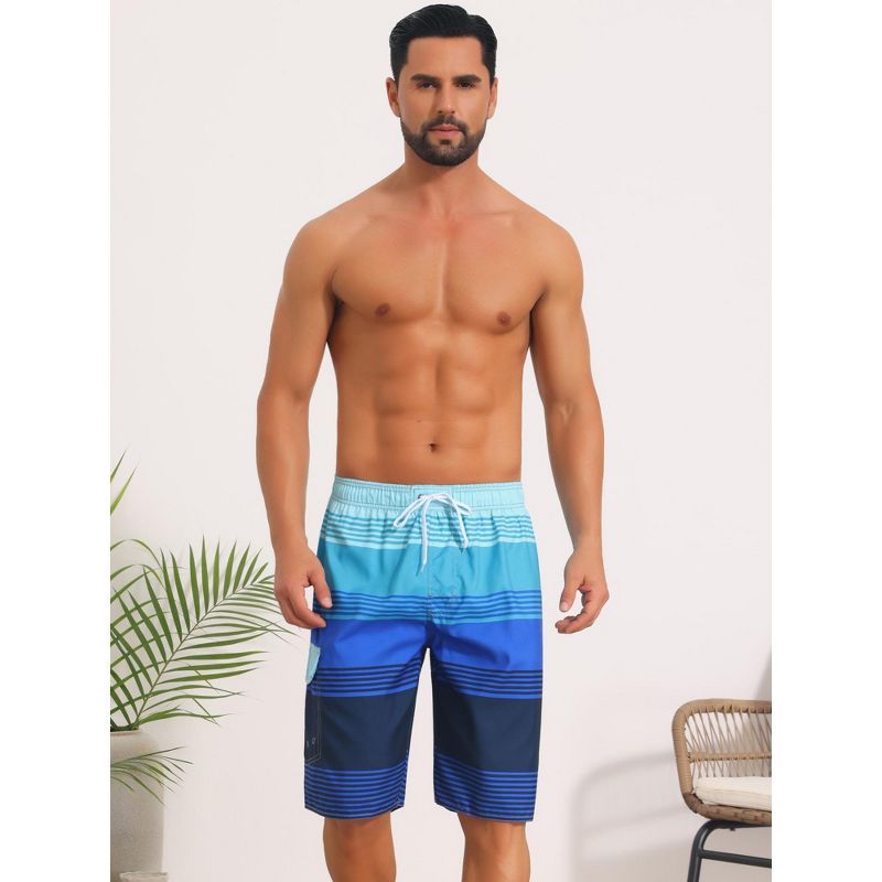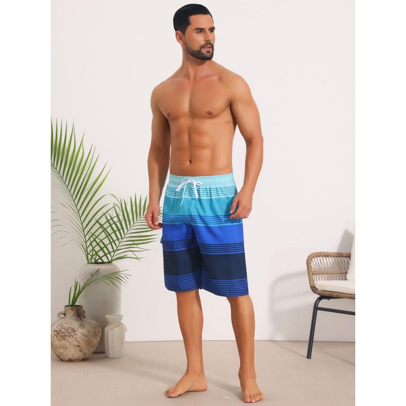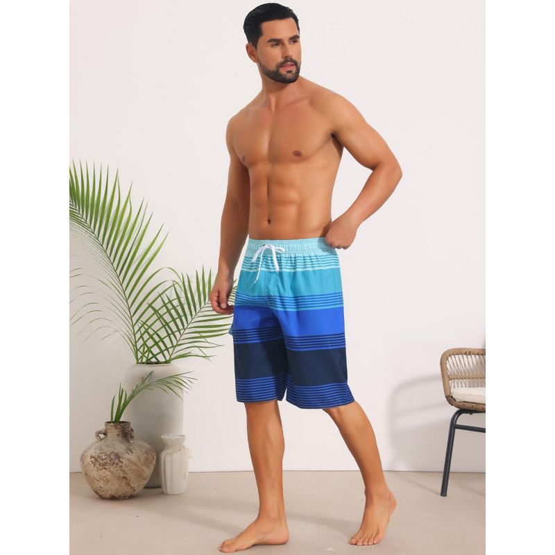 INSPIRE CHIC Men's Colorblock Striped Adjustable Drawstring Vacation Surfing Board Shorts 2 Packs 2 Blue 32