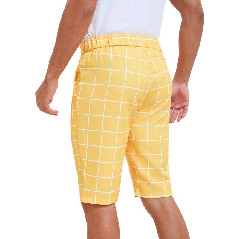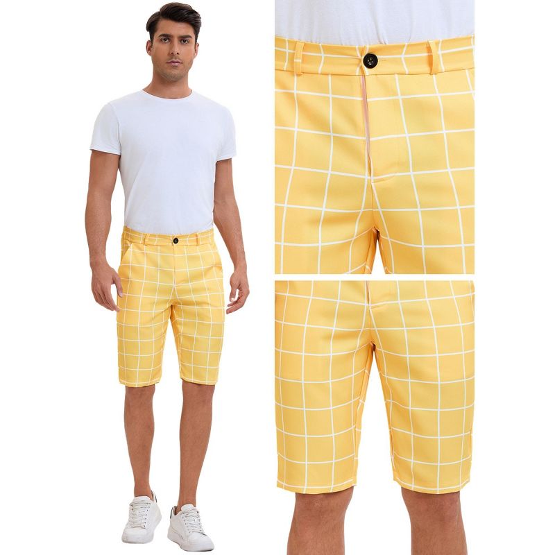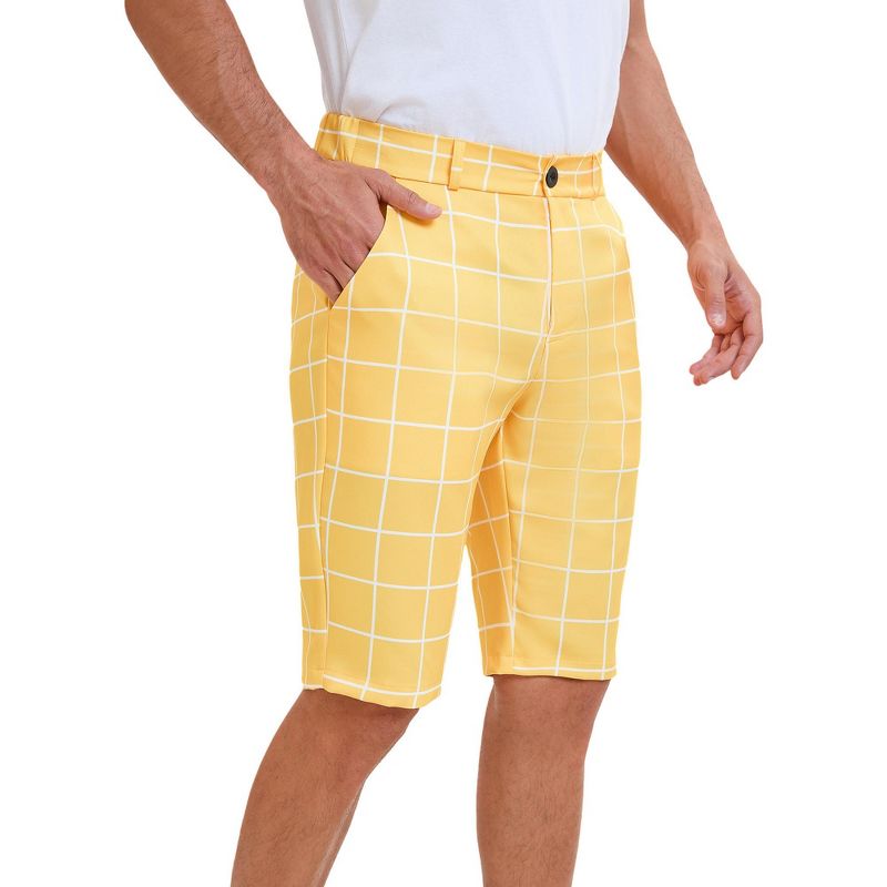 INSPIRE CHIC Men's Color Block Flat Front Formal Checked Pattern Shorts Yellow 34