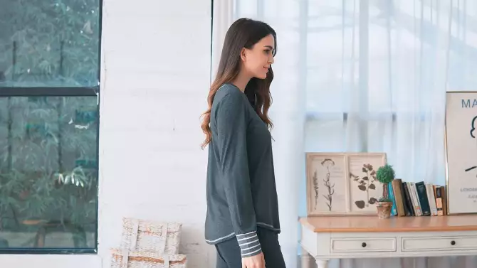 Ekouaer Pajamas Women's Long Sleeve Pj Set Soft 2 Piece Loungewear Sleepwear with Jogger Pants Black XL
