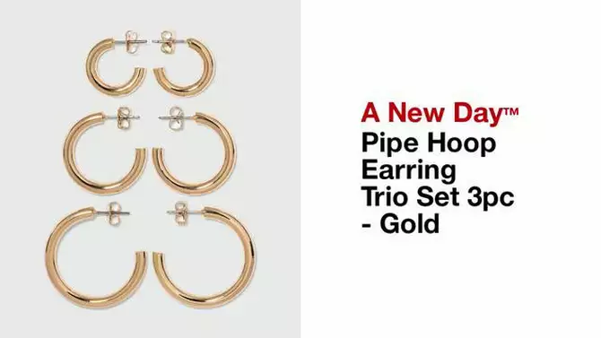 Pipe Hoop Earring Trio Set 3pc - A New Day™ Gold: Nickel-Free Metal, Post Closure, 0.7" Width, Lightweight Design