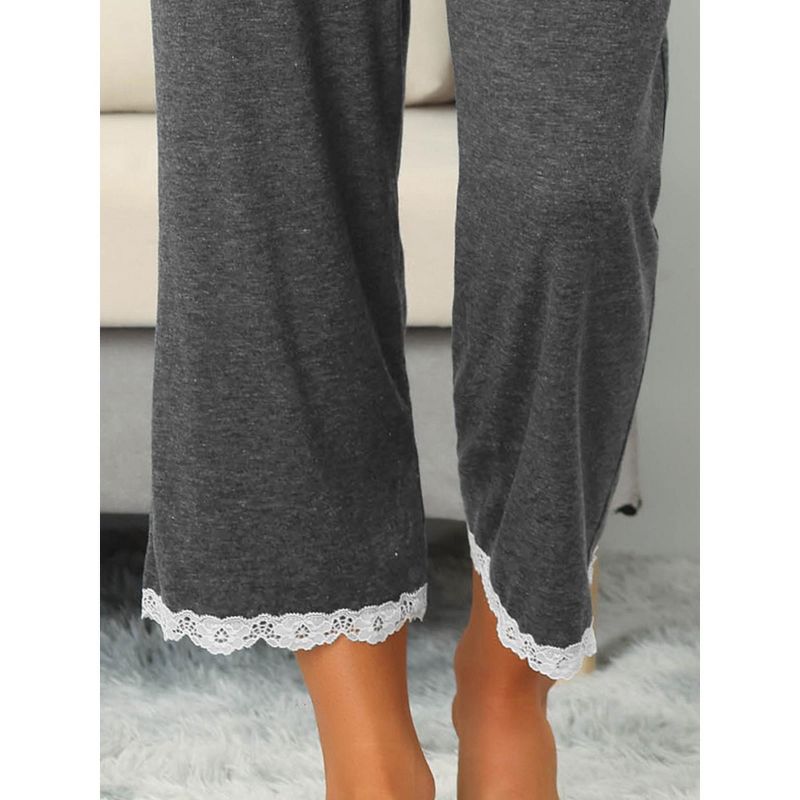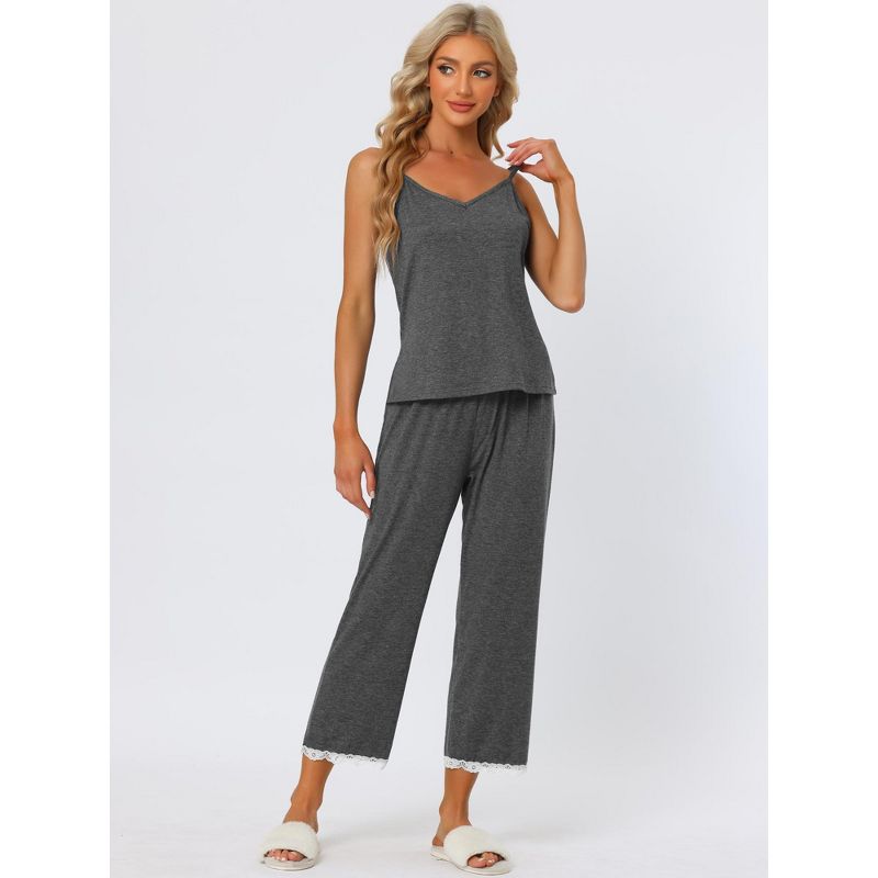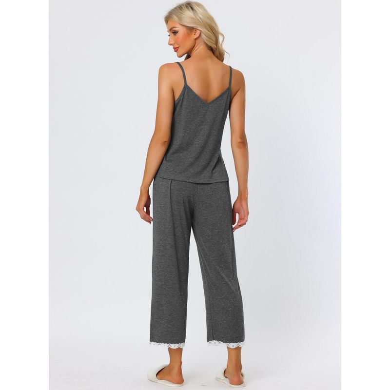 cheibear Women's Soft Cami Sleeveless Top and Capri Lace Trim Pants Summer Pajama Set Small Gray