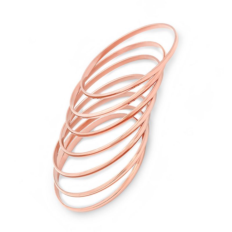 Steeltime 18k Rose Gold Plated Ladies Stainless Steel Set Of 7 One Size Bangles. Color Options: Silver, Gold, Rose
