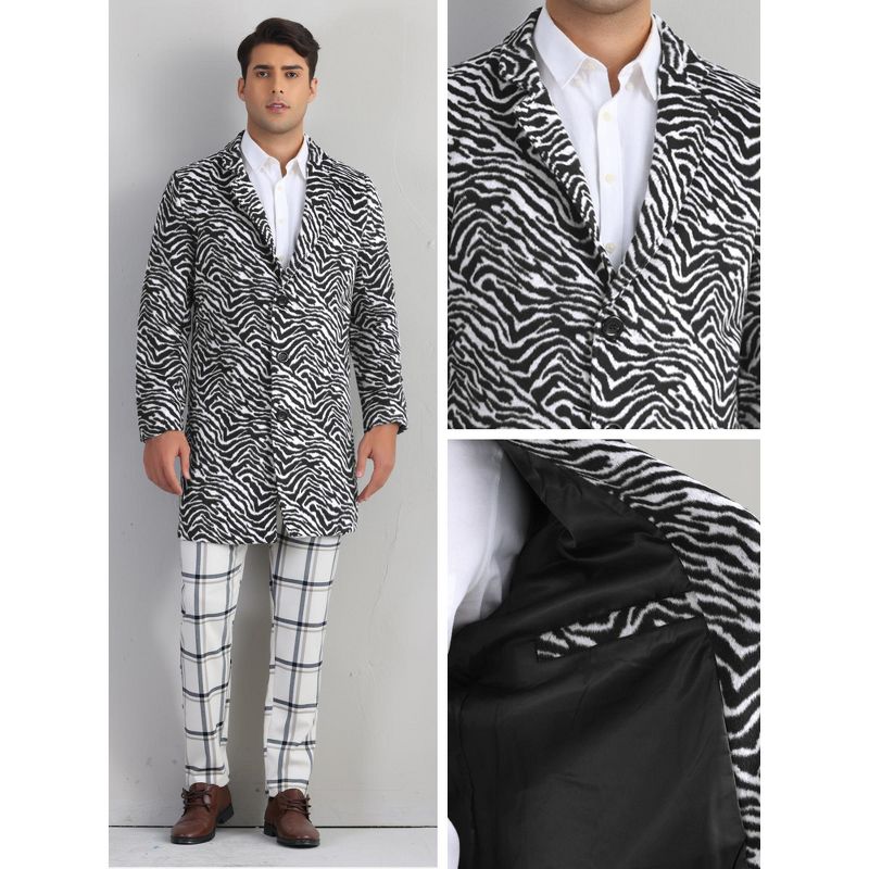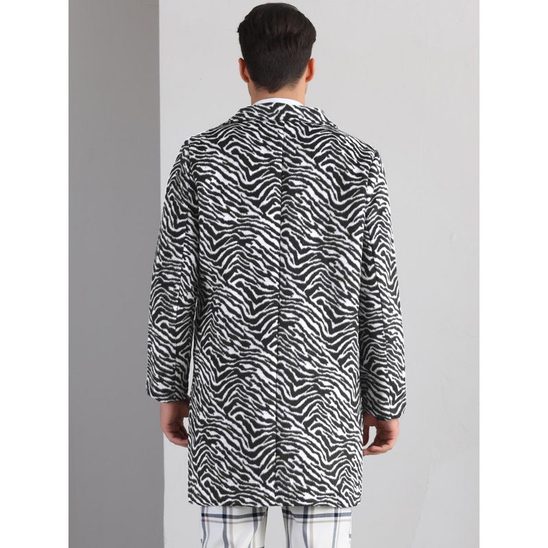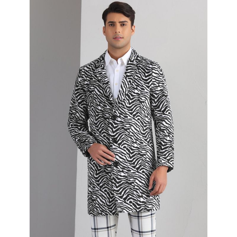 INSPIRE CHIC Men's Animal Printed Notched Lapel Classic Vintage Winter Overcoats Black White X Large