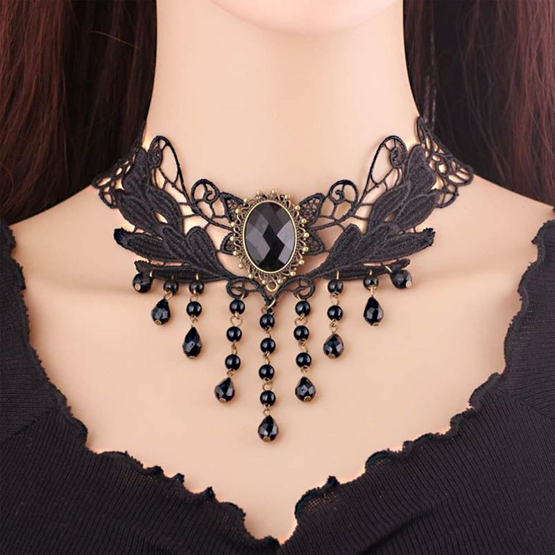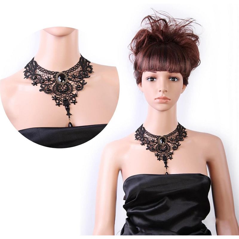 5-Piece Gothic Choker Set - Victorian Lace Necklace with Pendant, Steampunk Wedding & Cosplay Jewelry