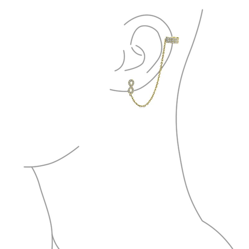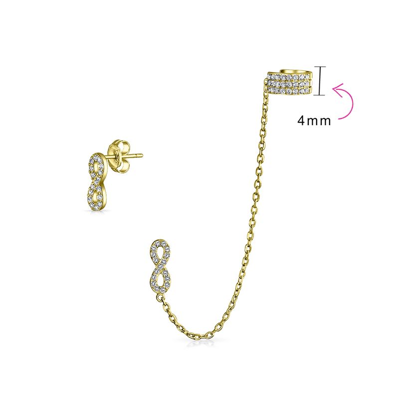 Bling Jewelry Love Symbol Ear Cuff Cartilage Threader Wrap Infinity Earring CZ Stud Set Gold Color - Gold