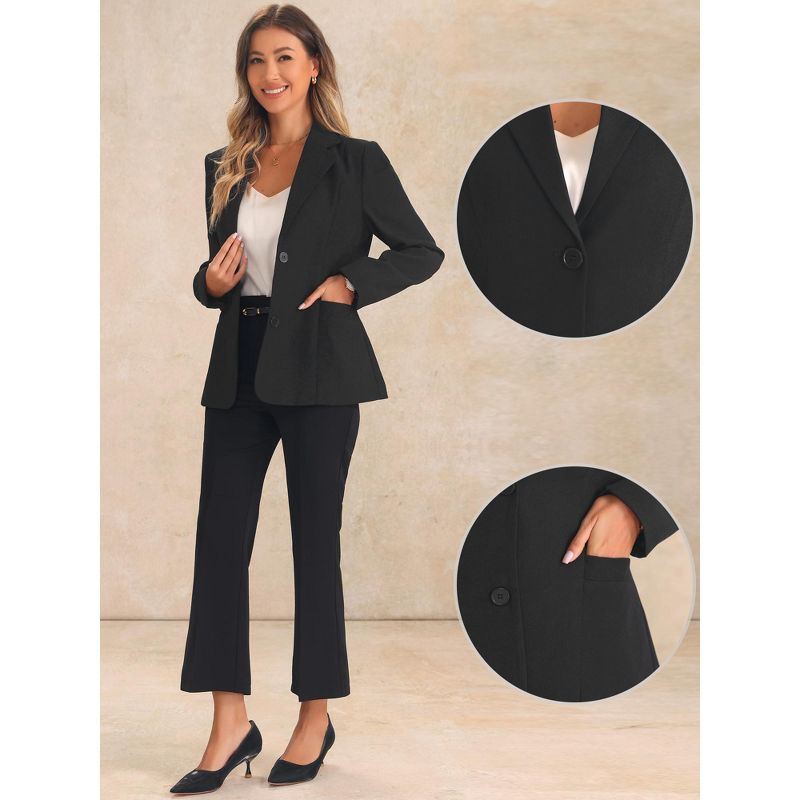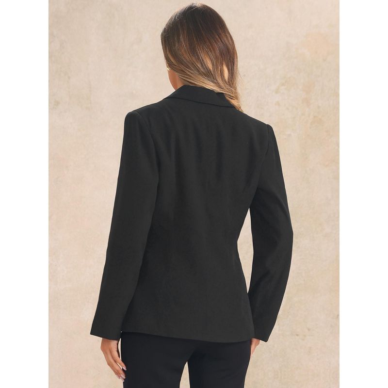 Allegra K Women's Lapel Long Sleeve Pockets Shoulder Pads Blazers Black Small