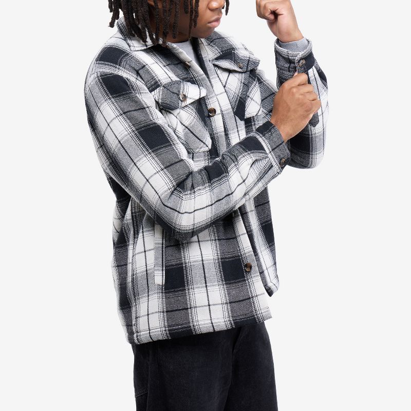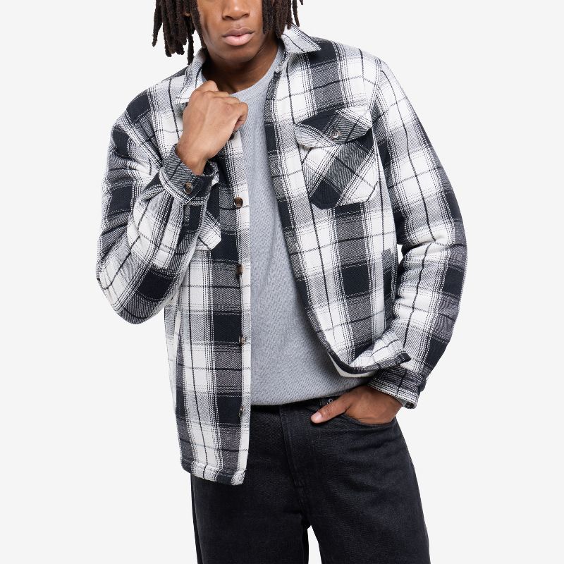 X RAY Men's Cotton Plaid Flannel Shirt Jacket With Faux Shearling Lining in WHITE/BLACK Size S