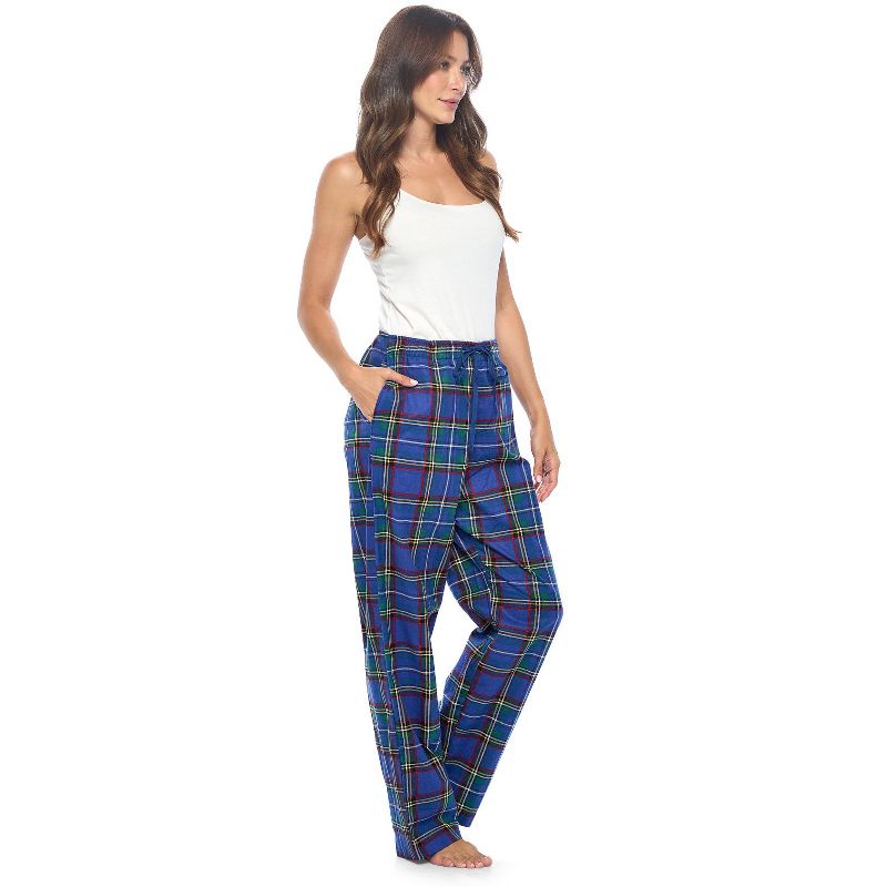 Casual Nights Women's Flannel Pajama Sleep Pants, Super Soft Plaid Pjs Bottoms - Blue Green Plaid - Large
