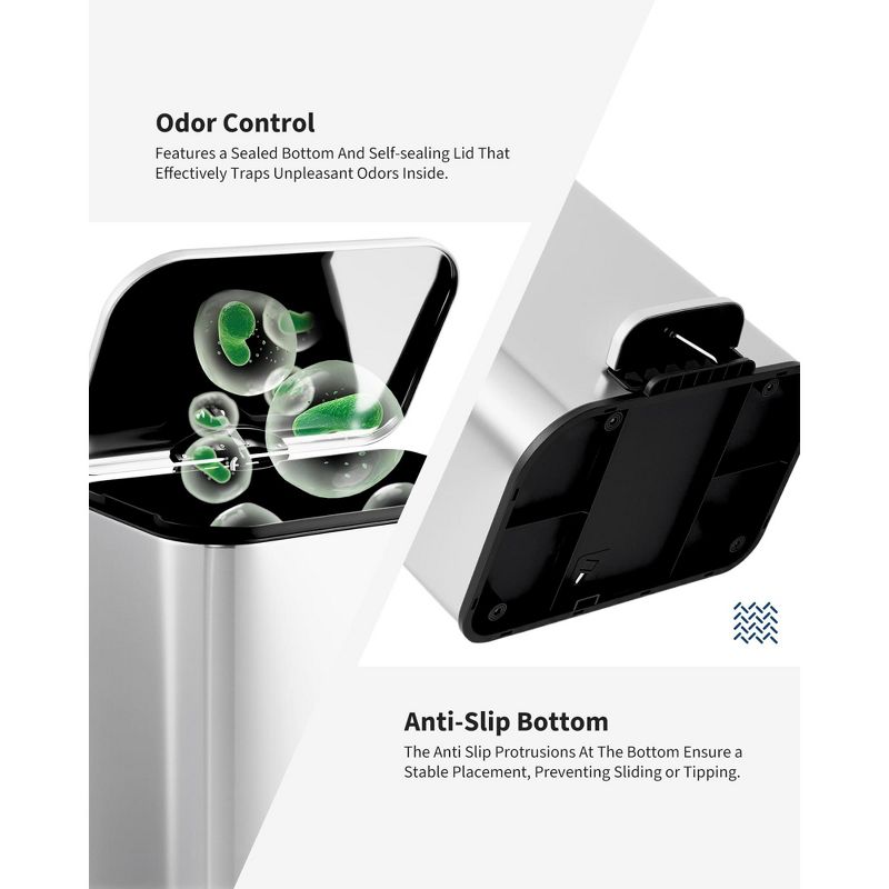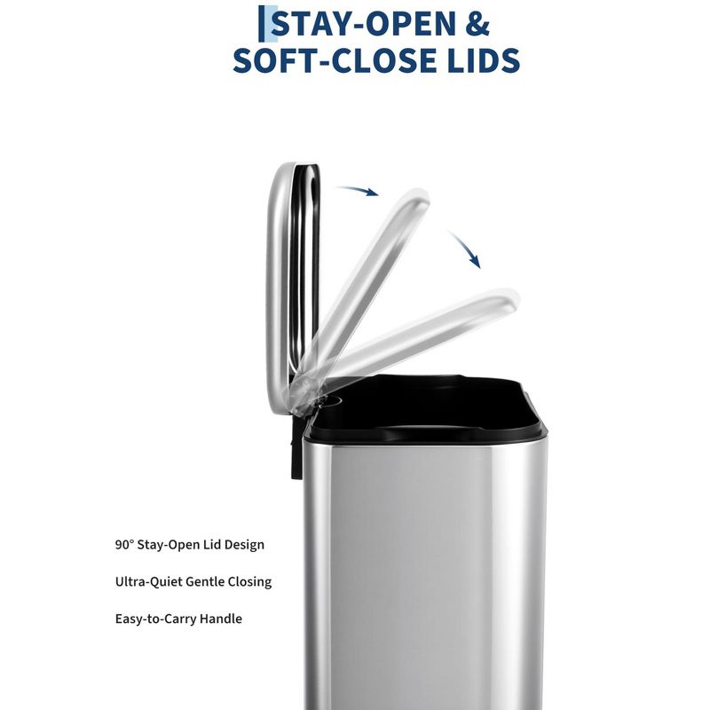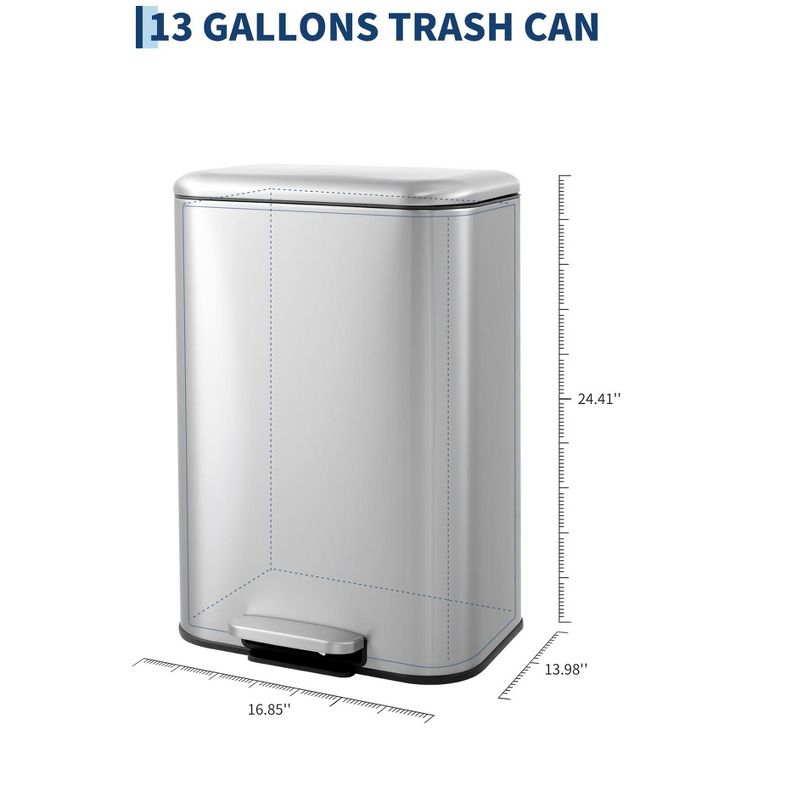13 gal Kitchen Trash Can, Stainless Steel Garbage Can with Soft-Close Lid with Removable Inner Bucket, Recycling Bin for Living Room, Office