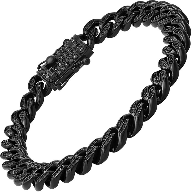 Steeltime Men's black ip stainless steel and simulated black diamonds thick cuban link chain bracelet