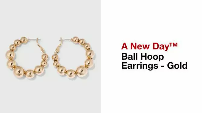 Ball Hoop Earrings - A New Day™ Gold: Nickel-Free Metal, Post Closure, 1.4" Length