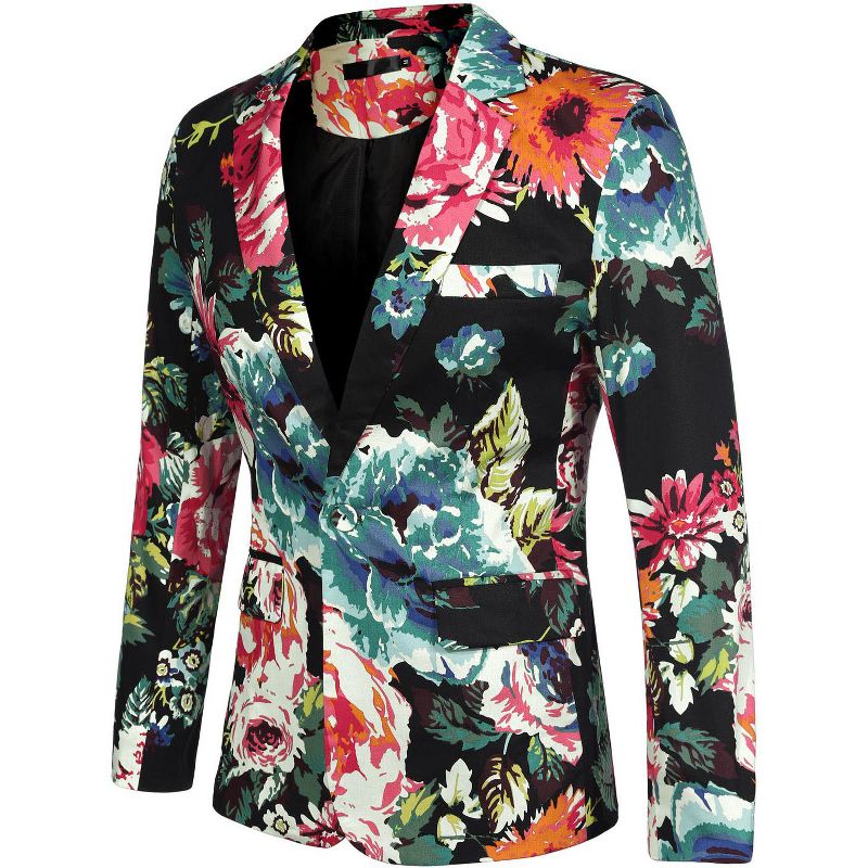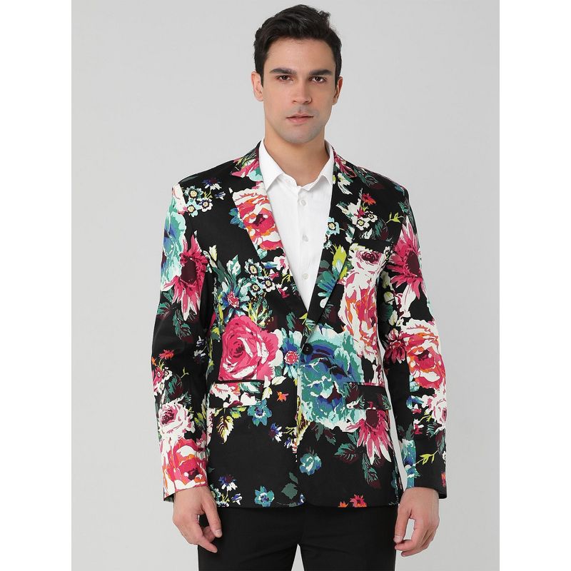 Lars Amadeus Men's Slim Fit One Button Prom Floral Print Blazer Jacket Black Blue 34