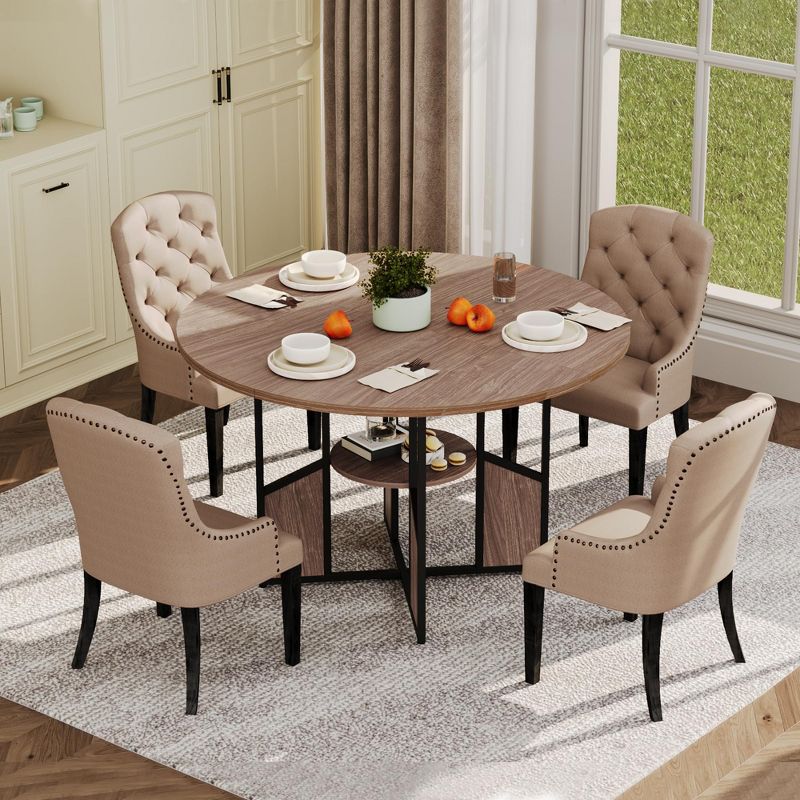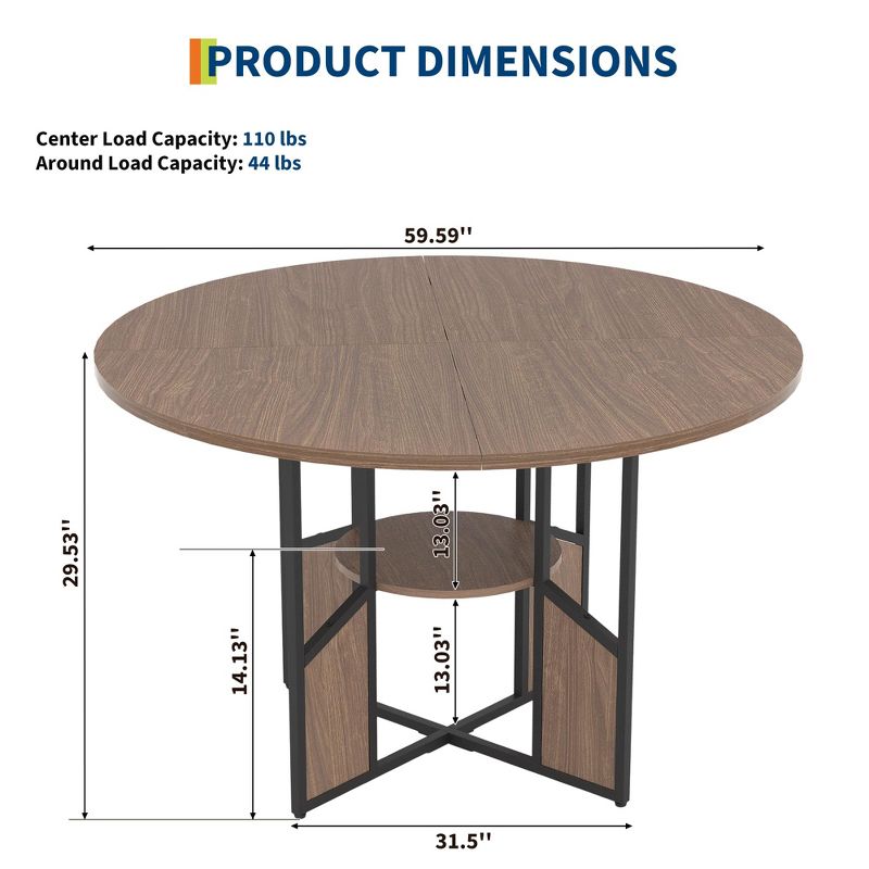 Round Dining Table for 4-6 People, 59" Kitchen Dining Room Circle Dinner Table with Storage Shelf, Space Saving Wood Kitchen & Dining Room Furniture