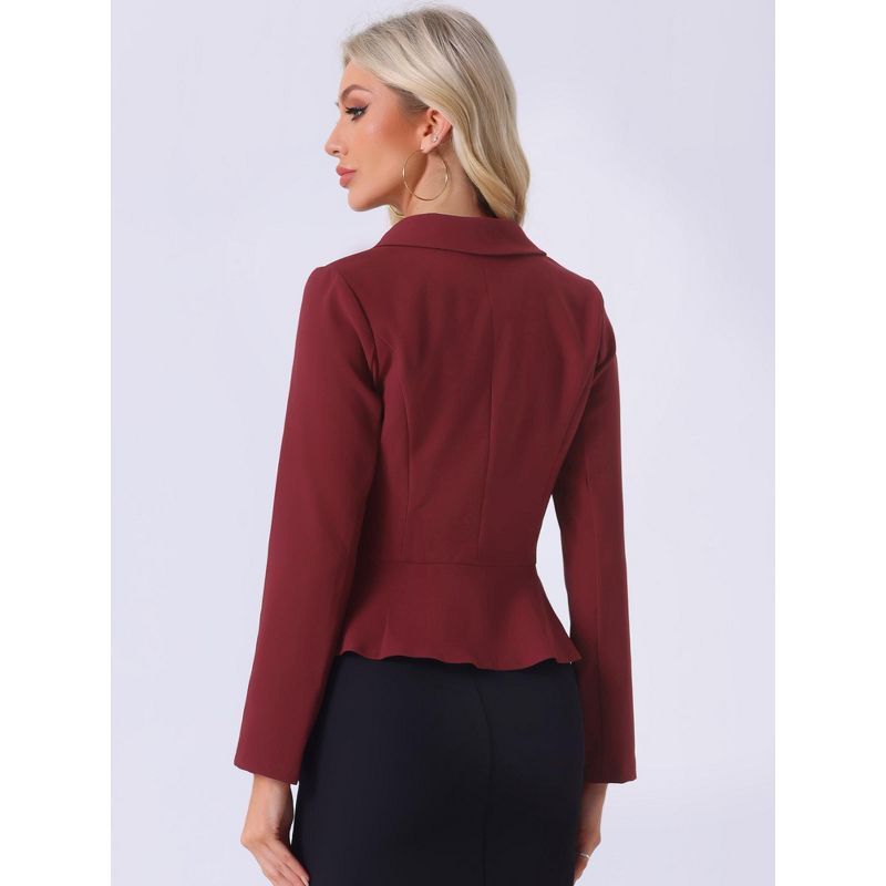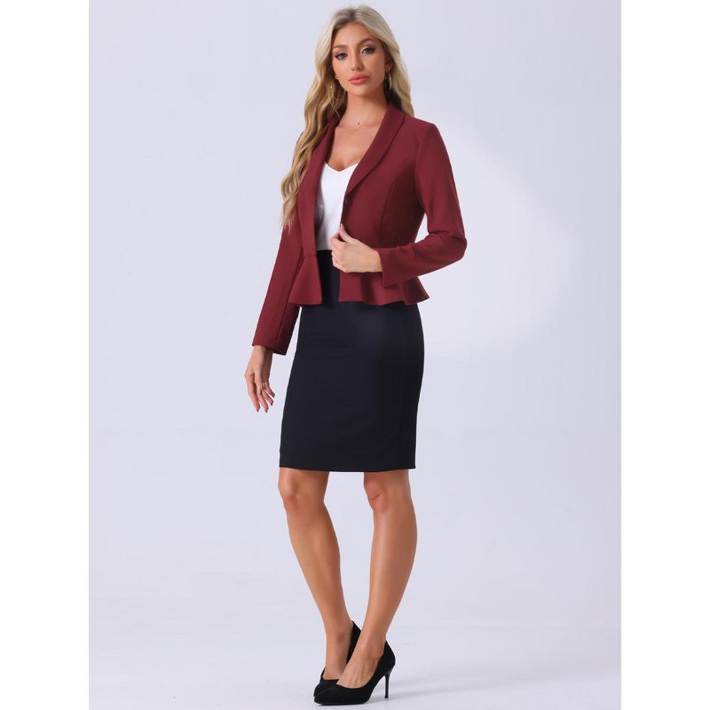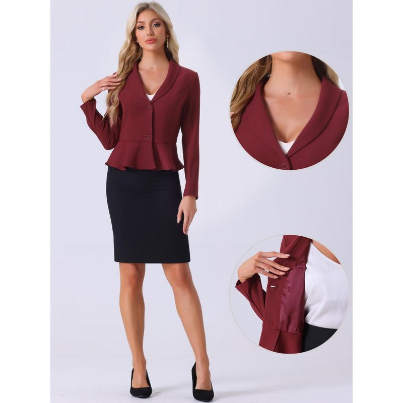 INSPIRE CHIC Women's Vintage Shawl Collar Long Sleeve Ruffle Hem Work Short Blazer Small Wine Red