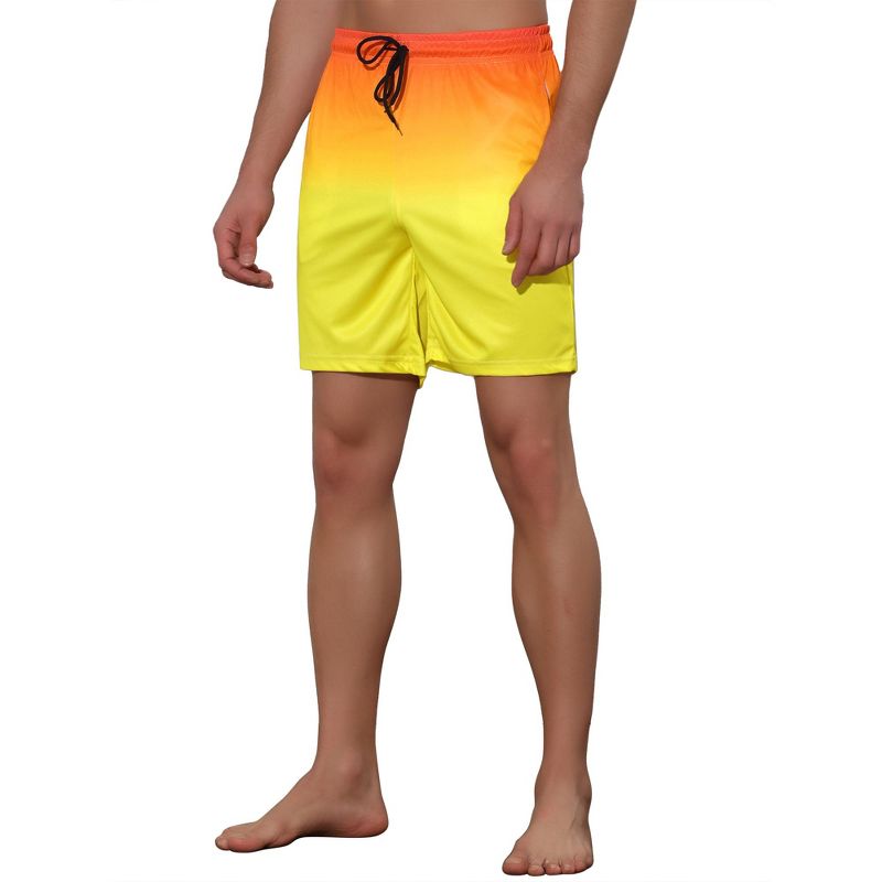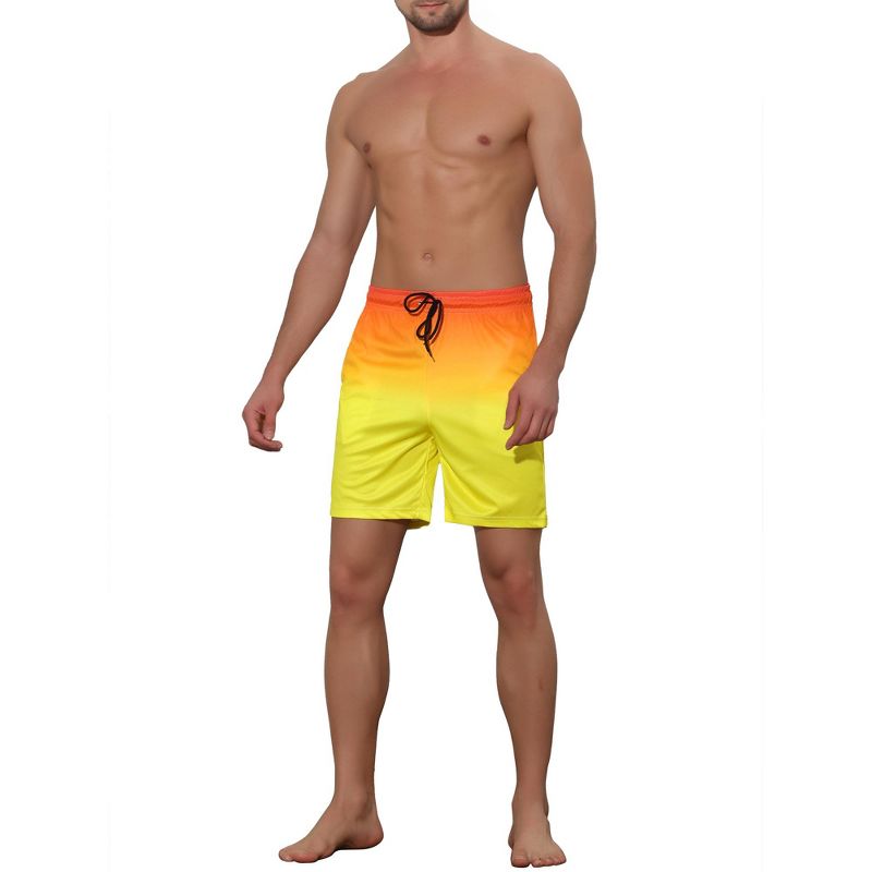 Lars Amadeus Men's Drawstring Waist Colorful Pattern Hawaiian Swim Board Shorts Yellow 32