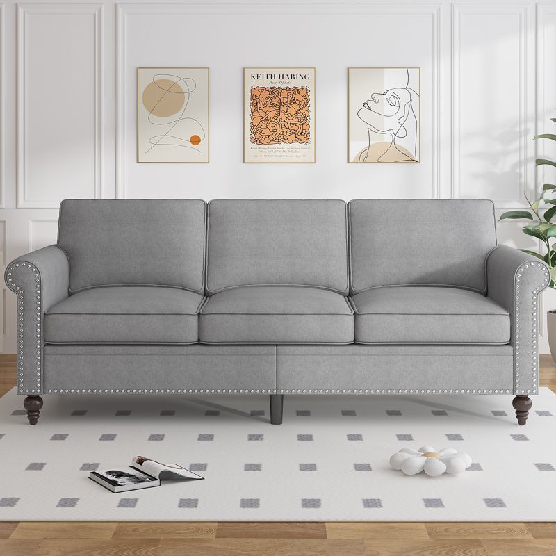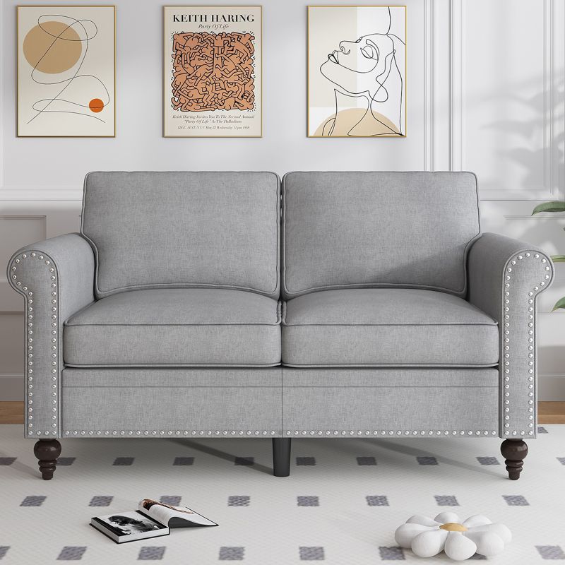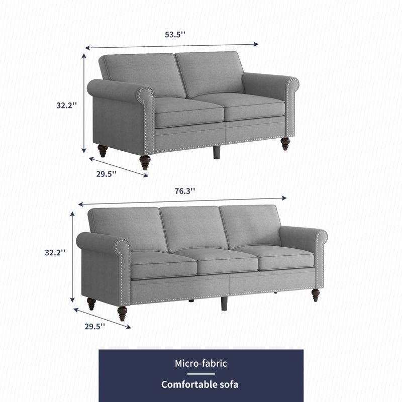 Mjkone 2 Piece Living Room Sofa Set with Rivet Design,Linen Fabric W76''3-Seater Sofa Couch with W53''Loveseat Sofa-Light Grey
