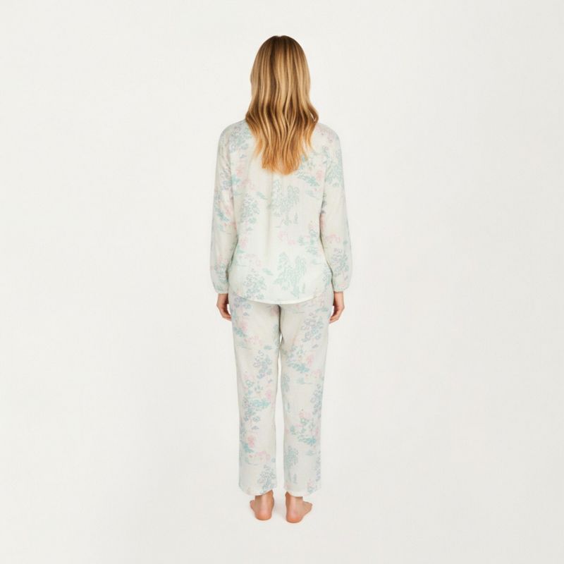 Anna-Kaci Lounge Women's 2-Piece Set Long Sleeve Button Front Top and Relaxed Fit Pants Pajama Set with Pastel Print - Small, Light Beige