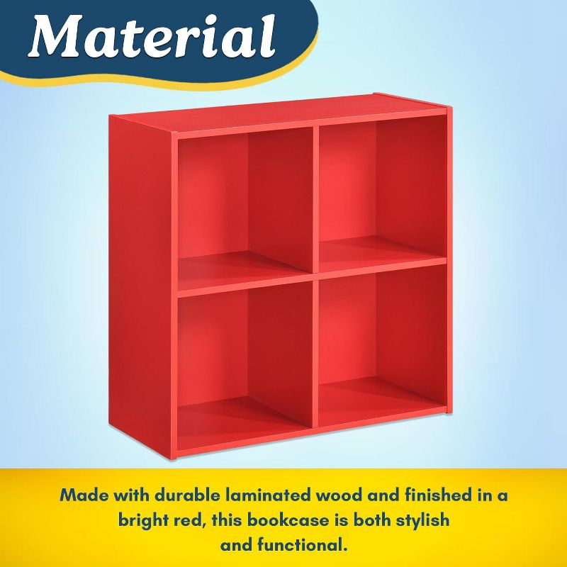 Kings Brand Furniture - 4 Cube Toy Storage Organizer Book Shelf, Kids Bookshelf Bookcase for Playroom, Bedroom, Nursery, Red