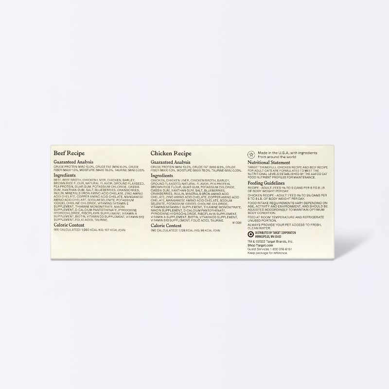 Chicken and Beef Pate Variety Pack Wet Cat Food - Kindfull™ 36oz/12ct