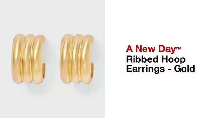 Ribbed Hoop Earrings - A New Day™ Gold