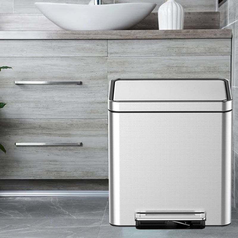 2 x 4 Gal Stainless Steel Dual Compartment Trash Can, Step-On Recycling Bin with Soft-Close Lid & Removable Buckets.