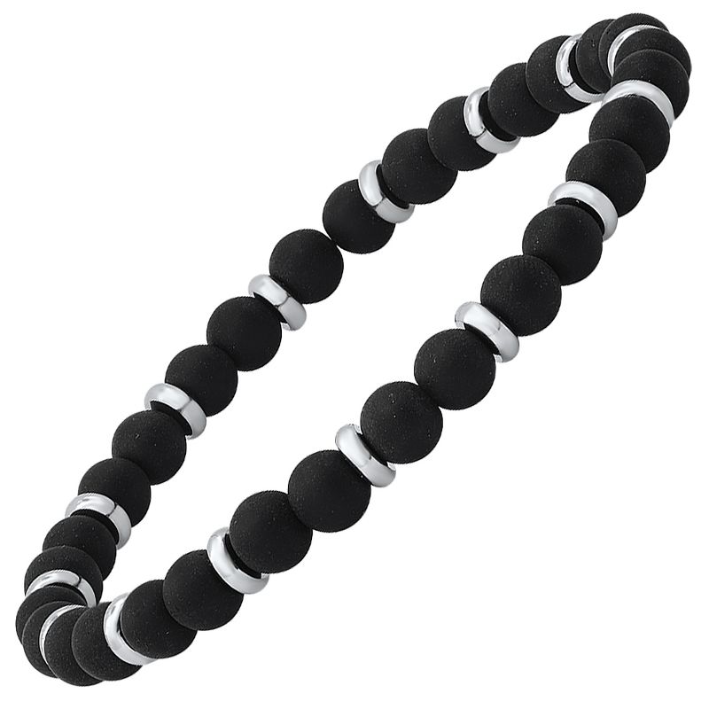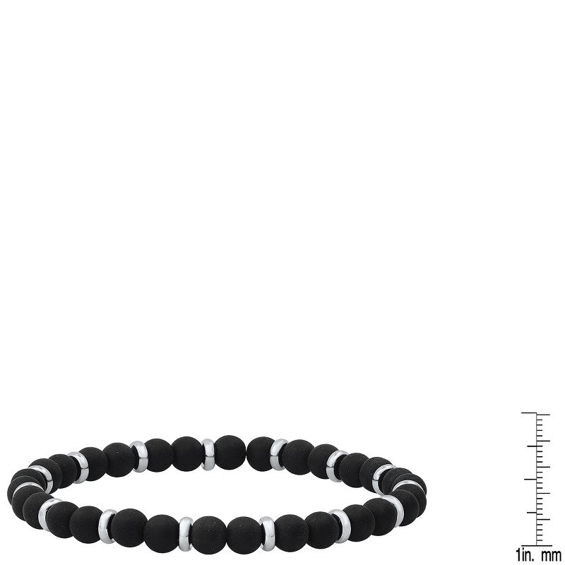 Steeltime Men's black lava and stainless steel beaded bracelet. Color Options: Black, Brown