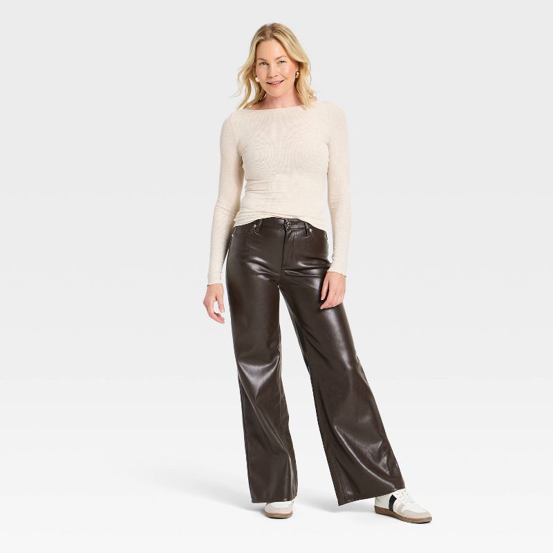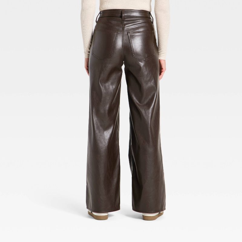 Women's Everyday High-Rise Wide Leg Faux Leather Pants - Universal Thread™ Brown 0