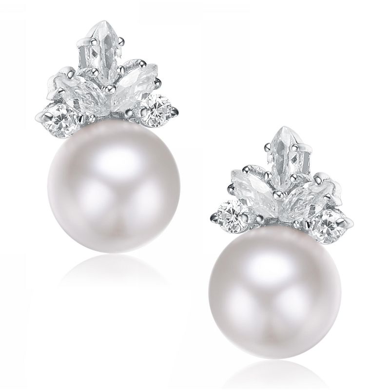 Guili Marquise Elegance Cubic Zirconia Sterling Silver Rhodium Plated 10mm White Mother of Pearl Earrings for a Delicate Luxe Look Shine